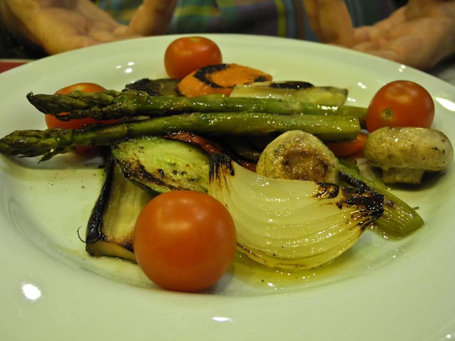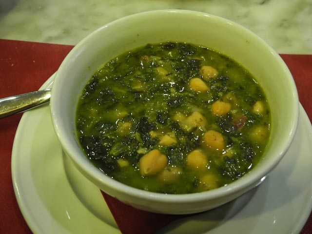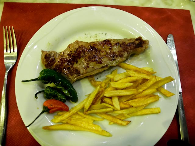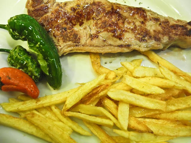 Susan had ordered a soup made with garbanzos, spinach and ham to start and it was quite tasty. I opted for grilled vegetables as a starter and they were cooked perfectly. We both ordered an entrecote for our main course and it was a generous cut of steak that was well cooked and accompanied by French fries and several pimientos de Padrón. Dessert was a fluffy piece of a commercial chocolate something or other. We passed on coffee, asked for the bill and left convinced that we had paid our last visit to this establishment. There are too many other good choices out there.
