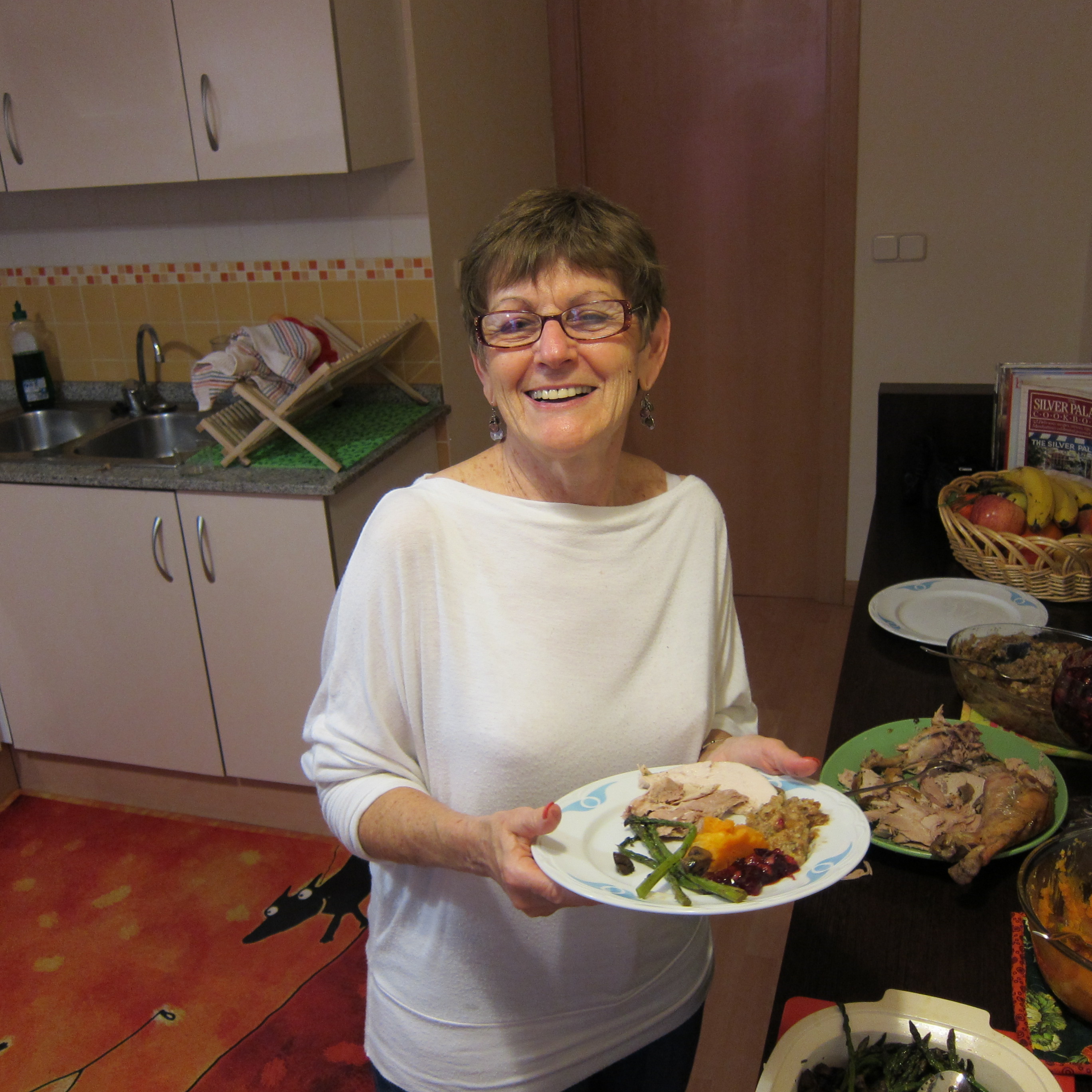Yesterday’s Thanksgiving celebration was as good as it gets. Thanks to Susan’s excellent organization the only things that needed to be cooked from scratch were the turkey and the mashed potatoes. When we took the turkey out of the white plastic bag we discovered the Mr. Turkey still had his head on and they made sure to include his feet in the package. The giblets were not neatly wrapped in a plastic bag. Susan needed to engage in a bit of a tug-of-war to remove them. That task was preceded by the beheading. We then placed the turkey in the oven and went about our respective business.