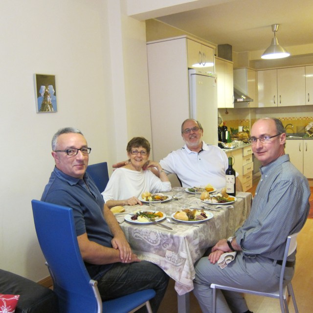 Brian then set out his pies and I made coffee and we made quick work of two of the best pies I have ever tasted. I made a round of gin and tonics for Pepe, Brian and Susan, while I opted for a glass of Chinchón. Vilma passed on the after-dinner drink and instead washed the dessert plates. We chatted a bit more and a little before 6:00 PM everyone took their leave and we put the few leftovers that remained in the fridge.