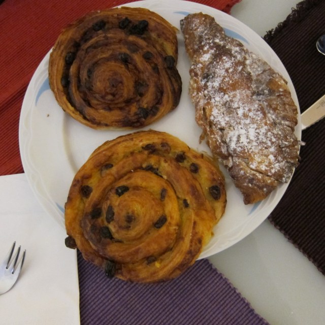 Yesterday was a kickback day. It was so kickback that Susan did not get out of her pajamas until 4:00 PM. I was out at 9:00 to pick up some bread and pastry at El Parisien. Everything looks especially good when you have not had breakfast. I picked up a couple of caracolas, an almond croissant and two loaves of bread. On the way home I picked up a Sunday paper since Susan likes to read the Sunday paper. When I arrived home the table was already set, so I unpacked the breakfast sweets and made myself a cup of coffee.