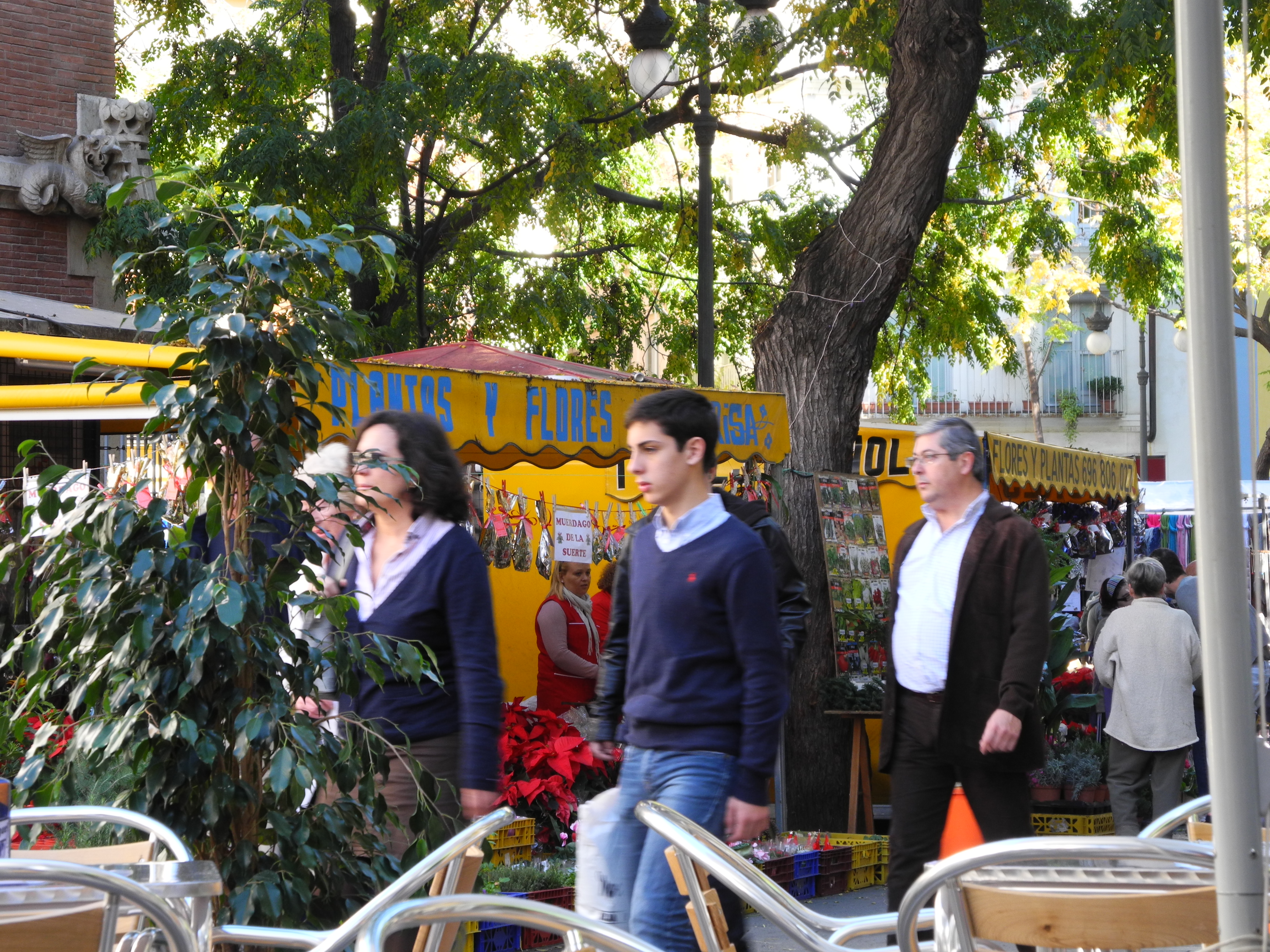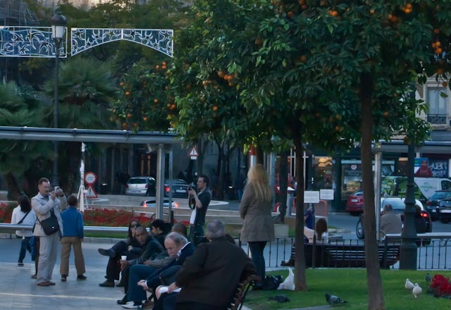 The city of Valencia comprises 51 square miles, which is on a par with the city of San Francisco.  The parts of the city to which we travel on foot and frequent most for shopping, dining or cultural reasons comprise, at the most, 15 square miles.  We can get most anywhere we want by walking fifteen or twenty minutes.  Our longest walk is to the Ciudad de las Artes y Ciencias and that takes about a half an hour. No matter where you walk the streets are filled with people coming and going from shopping, with kids heading to and returning from school, friends on their way to meet friends at a café or a restaurant, tourists exploring the cities, and people doing their daily work.  The chances of running into someone you know are greatly heightened.  Along your way you will inevitably see several or many of the people with whom you transact business and you will greet them and have a brief or lengthy conversation with him.  On a good day I can chat with close to twenty people.  That number is halved on a “bad” day.