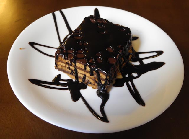 I spent a good hour working out and incorporated a few more exercises into my routine. The ability to work with the Fit Ball and rubber resistance allows me to avoid the crush around the machines and to go at my own pace. It was close to 1:00 when I got back home. Susan decided that she was not going to go to her Aqua Fitness class at 3:30 so there was no great rush to go out to lunch. At 2:30 we left the house and ended up at El Cuento, which is a couple of doors down from Miguel’s office.
