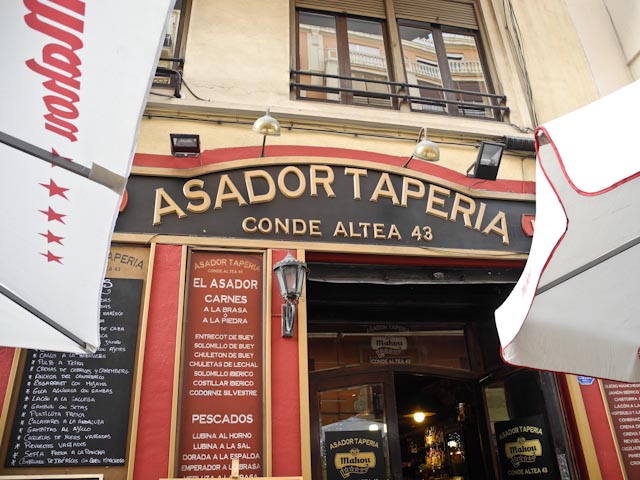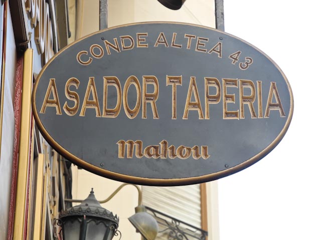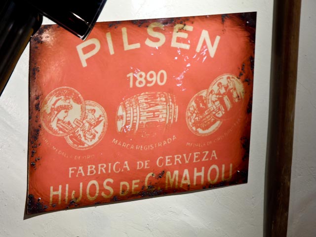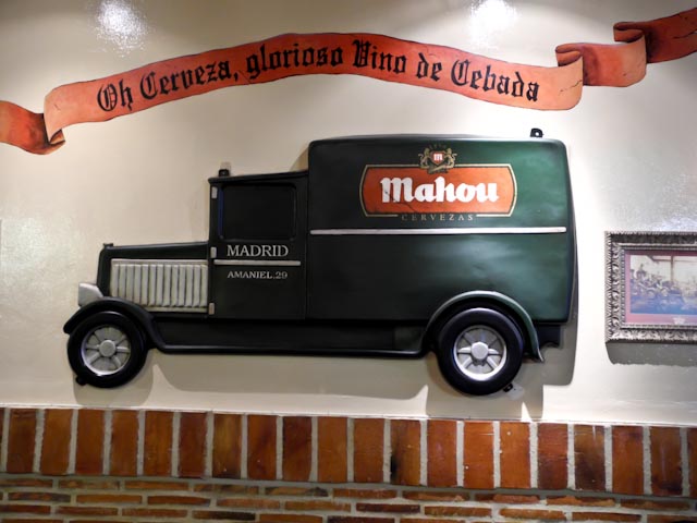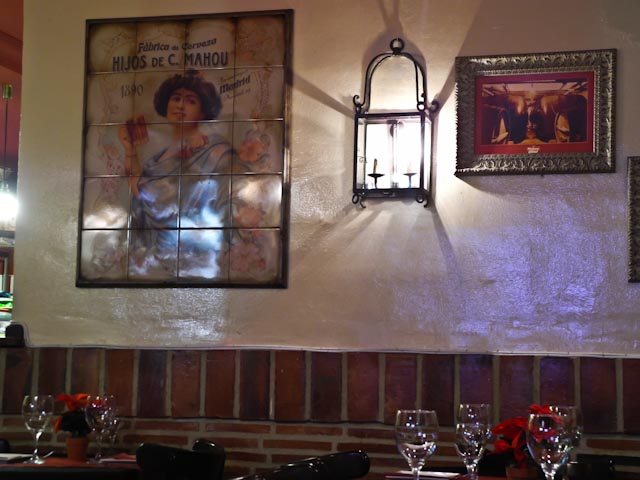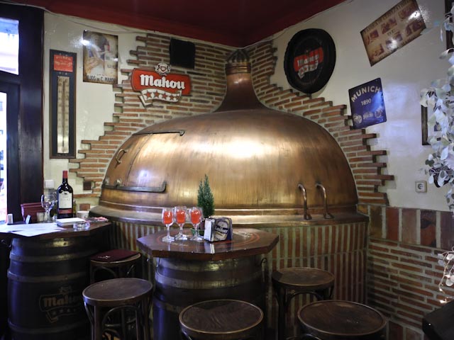 We gave some thought to eating at La Lambrusquería, but on our way there we passed by an asador that looked promising and so we decided to give it a try. The name of the restaurant was Asador Tapería Mahou. Mahou is one of the brands of beer that is made and sold in Spain. It turns out that this was the site of one of the placed in Valencia where the beer was actually brewed. They still have one of the old brewing vats in place just as you walk through the door Our server offered us a choice of tables and we sat down to peruse the menu.