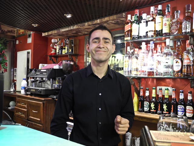My turn came at 1:30 and it started with a shampoo while I sat in the massage chair. Jorge then cut my hair and trimmed back my beard. That was followed by yet another shampoo. Then they put product in my hair and dried it and styled it. I looked a bit more human at the end of the process. The bill for both haircuts was 53 Euros. When we walked out the door it was 2:15 and it was time for lunch.