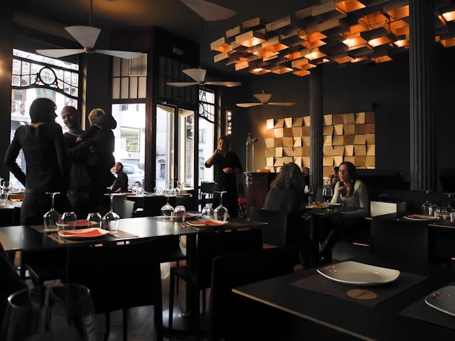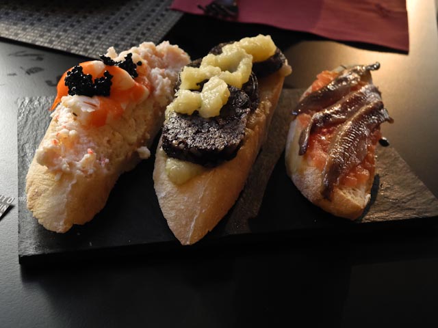 On our way we spied a new restaurant called Vino Tinto that had just opened. They have branches in Madrid and Oporto, according to the sign in the window. It is a restaurant that specializes in pinchos, which have their origin in the Basque Provinces and they are essentially tapas that are served on a slice of bread. I guess you could also call them canapés. It was close to 3:30 and we had not had lunch yet, but we were expected at Brian and Ofelia’s at 7:00 so something light was in order.