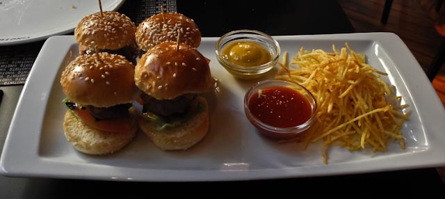 One was topped with anchovies from Cantabria, another with morcilla and apple compote and the third was a delicious crab salad adorned with two small shrimp. We also had ordered croquetas, but they were all out of them so we instead we ordered a plate of sliders that we had seen the people at the next table enjoying. The sliders had lettuce and tomato as their base and were topped with bits of caramelized onions. They were served with a side of patatas paja, which are crisply fried wisps of potato. While I waited for the bill, Susan made her way to the basement where they have their special events dining room and their wine cellar. When we left it was close to 5:00.