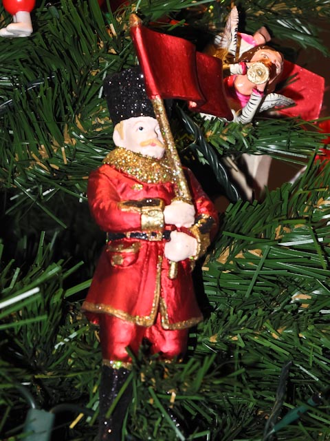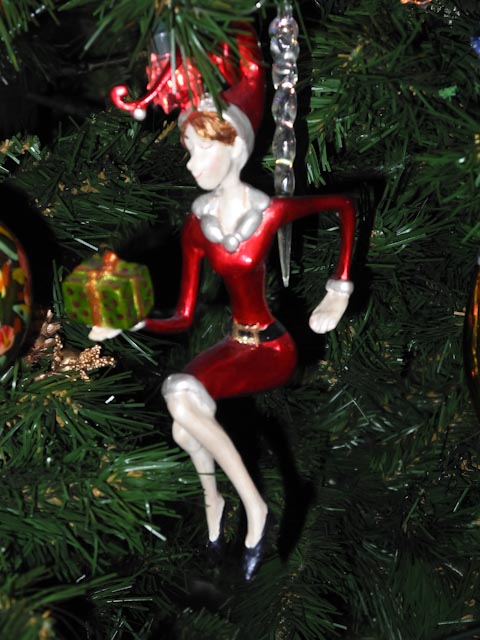 The house was Christmas ready with lovely red candles on the table that was already set and waiting for us when the time was right. There was a Santa on a side table and in the corner of the living room stood one of the lovelies decorated trees I have ever seen. The tree was an artificial one, but it is one that has traveled with the family as it moved from country to country according to Brian’s postings with the State Department. All the ornaments had their history having been purchased in the various places where the Oberle family had lived. There was even an ornament that Olivia had made when she was two years old. There was also a Nativity scene on a side table that was purchased in Sri Lanka. It was both very primitive and very charming.