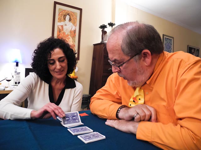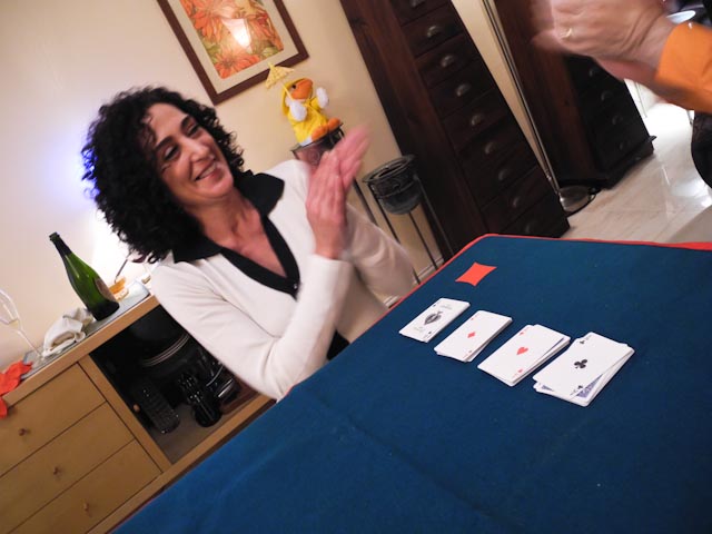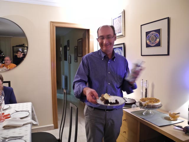 When the table was cleared it was time for some magic. I did some six or seven effects and they were well received. After the “show” we retired to the living room for some coffee and an after dinner drink. Ofelia brought out a plate of turrón (nougat) and marzipan, which is traditionally eaten on Christmas Eve. There were several varieties and I felt obligated to try them all. We chatted for a while and as midnight approached we were all feeling the effects of that wonderful meal. Brian kindly drove us home and it was a little after 1:00 when we finally went to bed with visions of sugarplums dancing in our head.