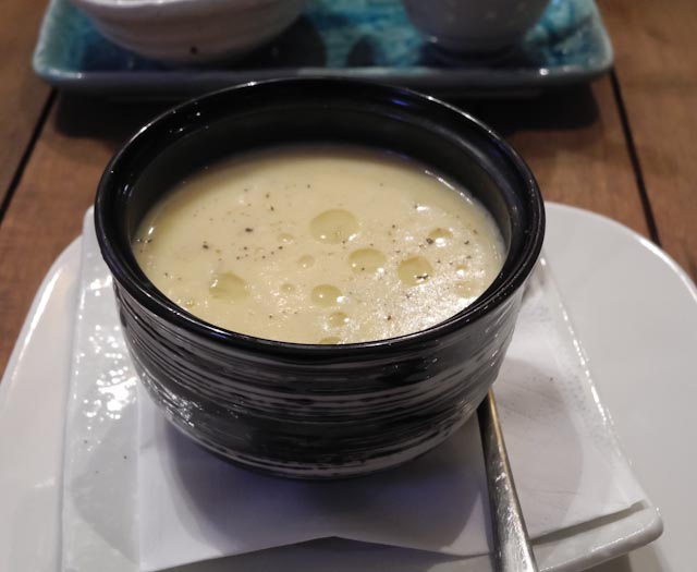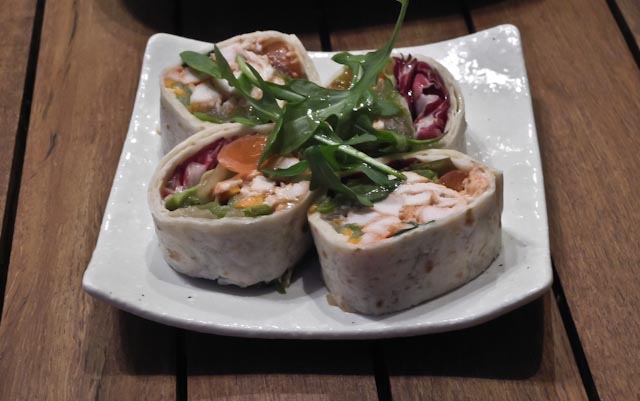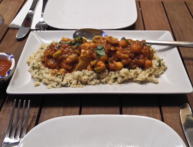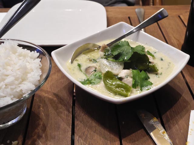 It turned out that while Santi is a big Glee fan, Mike is not. Oh well, that’s life. We settled in at our table and Santi went to work creating another winter cocktail for Susan. I enjoyed my usual beer. We started off with some hummus and a bowl of corn soup quickly followed. Next came the tandoori chicken wrap, followed by Moroccan chicken and a green Thai curry. As usual all dishes were exceedingly well prepared and had the requisite amount of heat to make the food taste even better without overpowering it. When we finished we wished Santi a Happy New Year and we wished Mike the same plus our wishes for a safe journey as he returns to Scotland today to visit with his family.