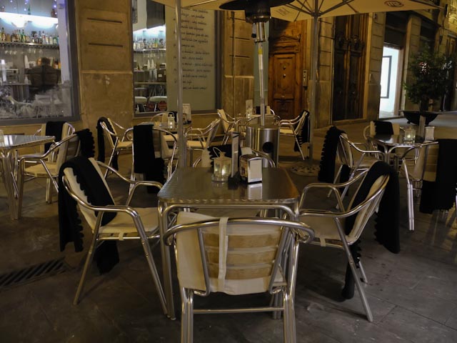 Soon after reaching home we headed out again. Our destination was Mercadona and our goal was to replenish a number of staples. When we had put everything away it was already 3:30 and we decided it was time for lunch. We passed by the crepe restaurant, but it was closed. We continued walking along Guillén de Castro until we discovered a very small restaurant called Lauditori. We ordered the menu of the day. We started with a very tasty salad with goat cheese, lettuces, carrots, walnuts and raisins. I had the chicken breast as my main course and Susan chose the hake. My dessert was flan and Susan tried the roast pumpkin. After our coffee we headed back home and that is where we spent the rest of our day.