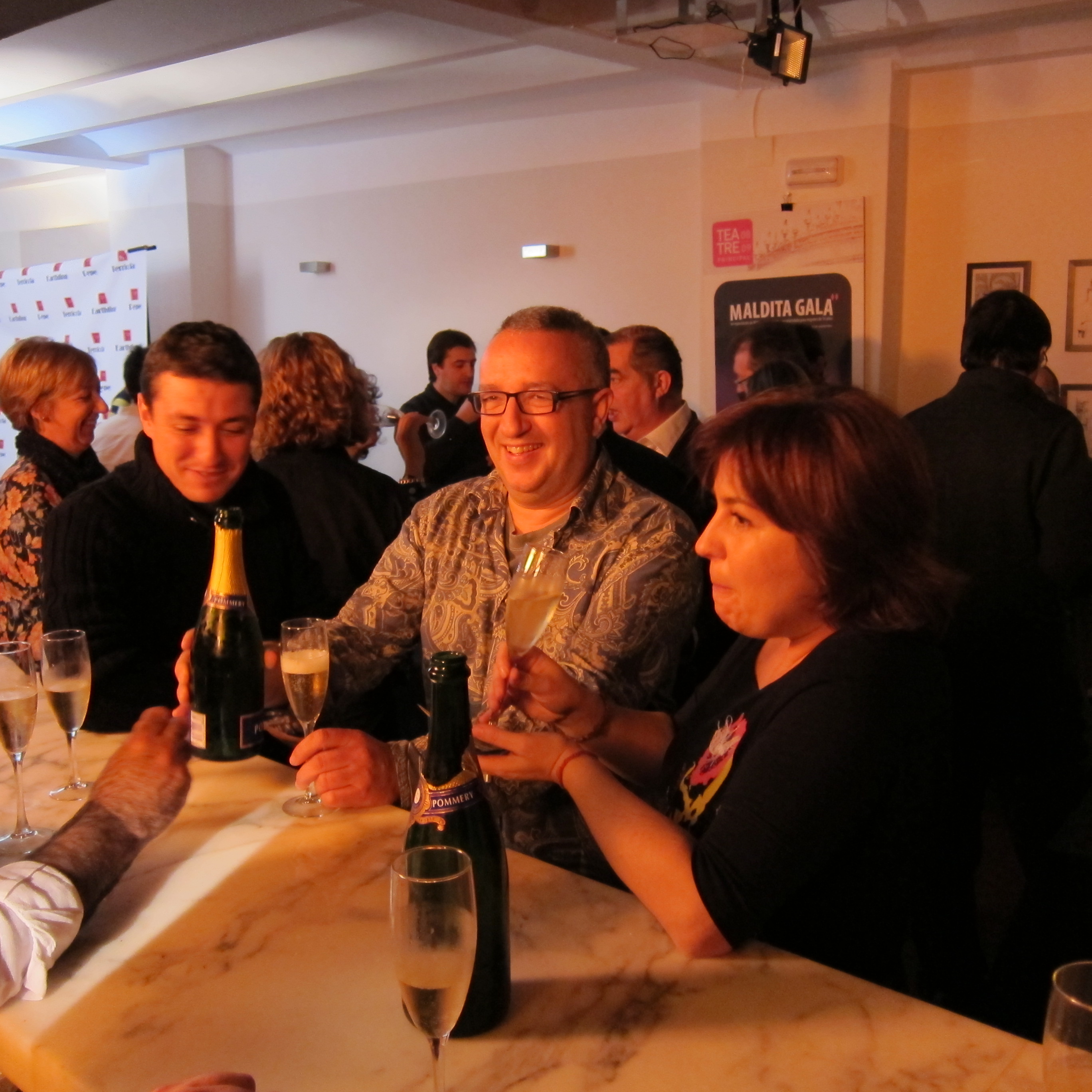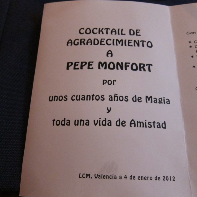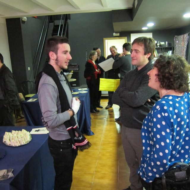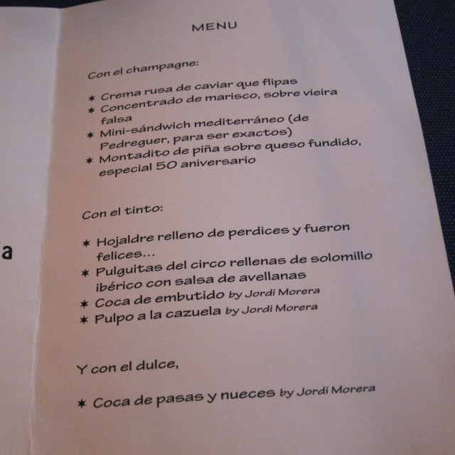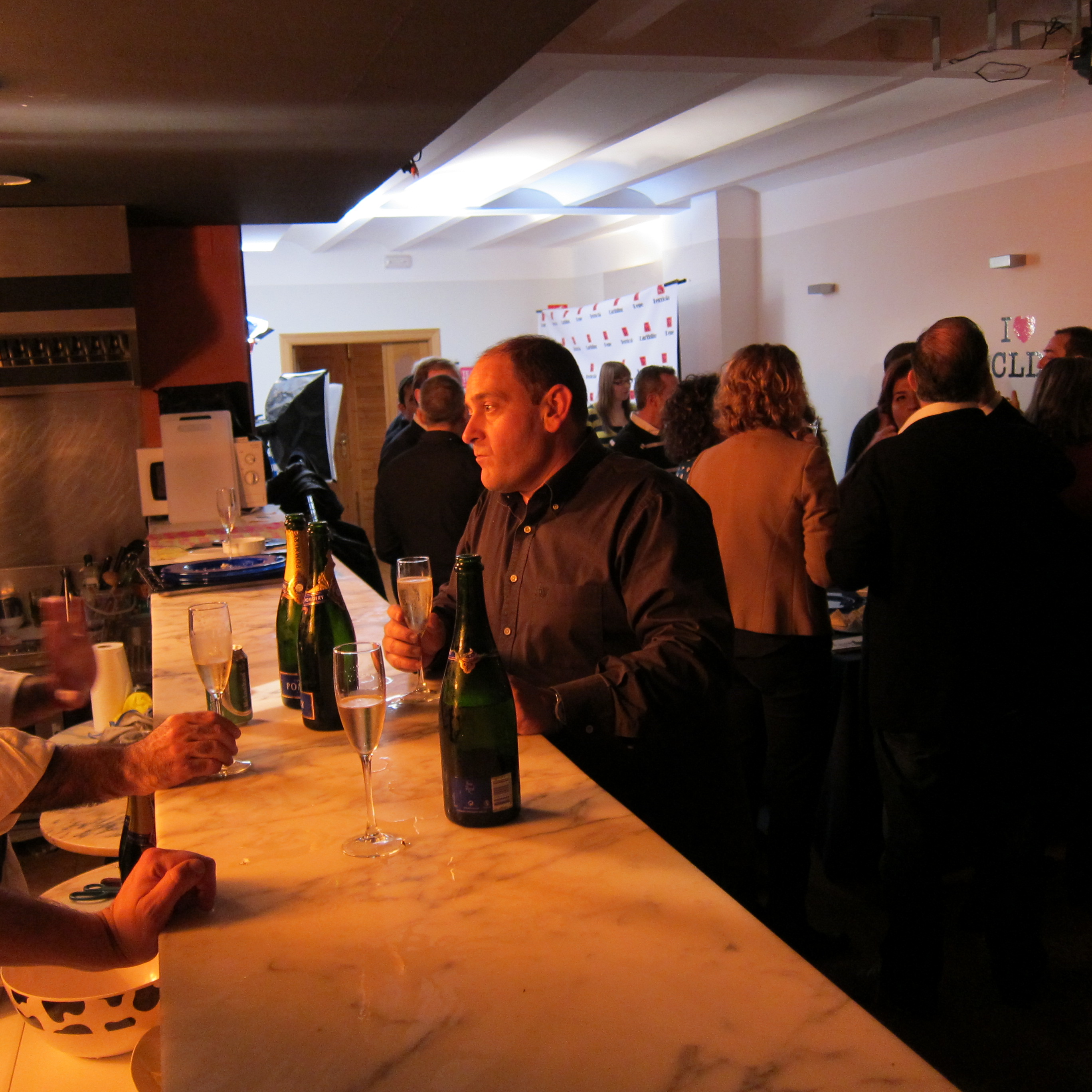 Sari and Mari Mar were hanging a huge banner at the entrance. Jordi Morera was putting the finishing touches to the dishes he had prepared for the event. Pepo, tonight’s event planner, was chilling down the champagne and setting up the glasses for tonight’s champagne, wine and liqueurs. Since Pepe did not show up until close to 9:30 we had achance to chat with a number of the invited guests. I estimated that there were forty people at this event.