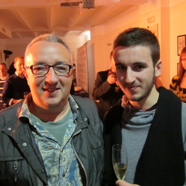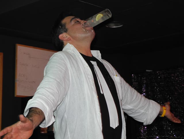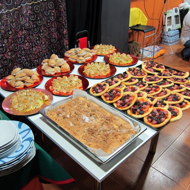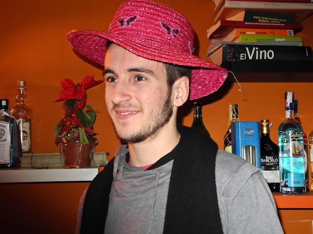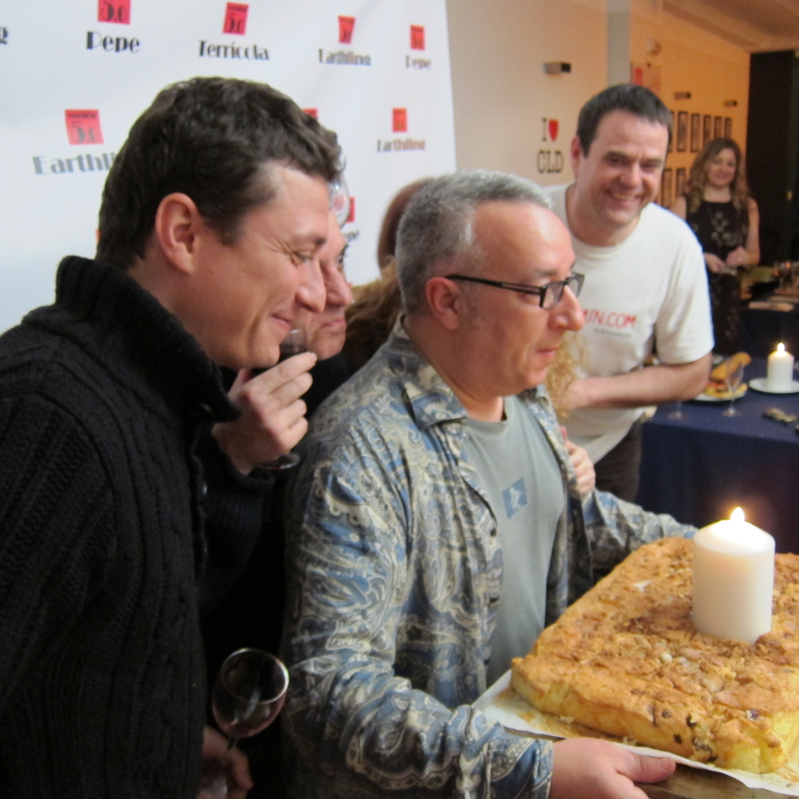 Sari and Mari Mar were hanging a huge banner at the entrance. Jordi Morera was putting the finishing touches to the dishes he had prepared for the event. Pepo, tonight’s event planner, was chilling down the champagne and setting up the glasses for tonight’s champagne, wine and liqueurs. Since Pepe did not show up until close to 9:30 we had achance to chat with a number of the invited guests. I estimated that there were forty people at this event.