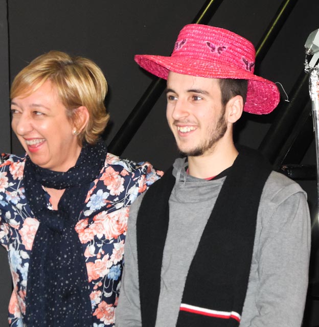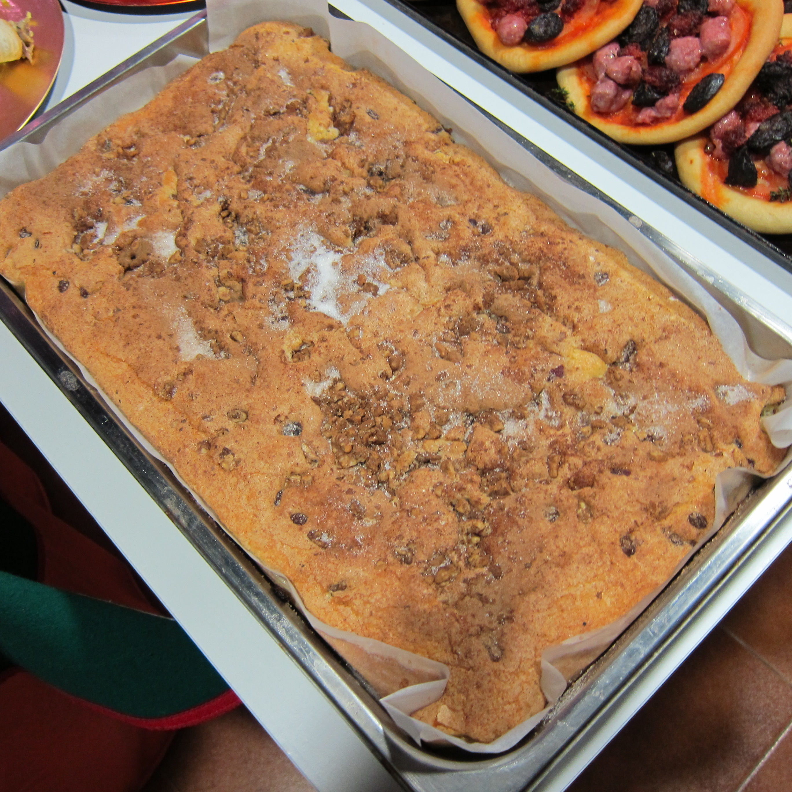 While the tables were being cleared a second time so that the dessert and the liqueurs could be set out, Pepe was presented with a number of gifts. We had all signed a T-shirt and hat and Pepe put them on and posed for a number of pictures. Several of the guests performed some magic and then came the last element of the surprise. Pepo had engaged the services of his favorite singer to come and serenade Pepe. She started off with a jazz rendition of Happy Birthday and followed up with another five or six songs. While we listened to her we enjoyed a coca de nueces that had been made by Jordi and glasses of mistela and orujo. The party was winding down at 12:30 when we left and it was about 2:00 when we felt that our meal had digested sufficiently for us to go to bed.