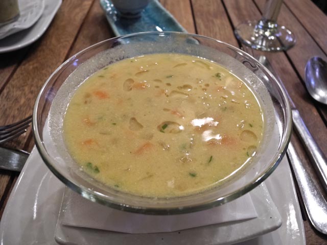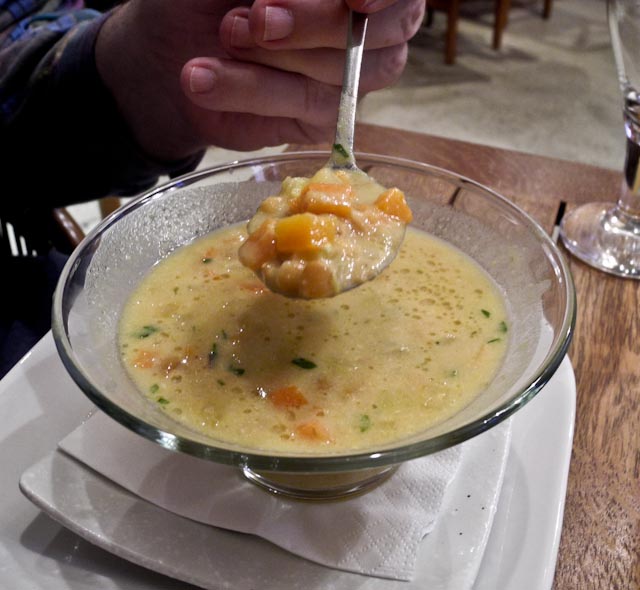 Since we were near The Ginger Loft we decided to drop in for lunch. There was a party of ten already seated at a long table, so Susan and I sat at the remaining open table downstairs. We chatted briefly with Mike who had spent some time recently with his family in Scotland. We then set about ordering. Our lunch yesterday started off with some caponata, followed by a lentil soup, a tandoori chicken wrap, a Chinese beef dish and lastly a Thai curry. As usual, everything was very tasty with just the right amount of heat. We paid our bill and headed off to the Corte Inglés to pick up a few things.
