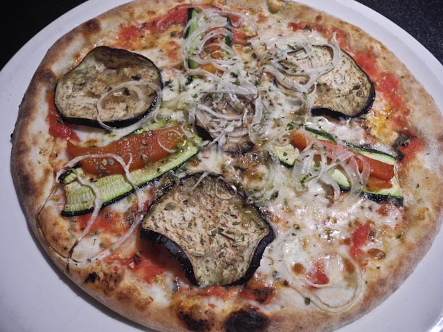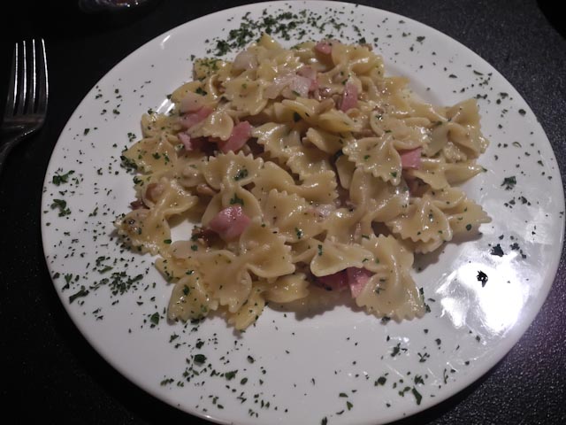 After such exciting news the rest of our late morning was mundane. We walked down to Prácticas and bought a waste can and a toilet brush. After we set both in place, we decided that it would be best to have lunch at La Fórcola and we sat down at our table at 2:30. The place was filled to the rafters. We chose the menu of the day and both Susan and I started out with the avocado and shrimp salad that had a base of a variety of lettuces, some tomato, onions, avocado and shrimp. For the main course I opted for a vegetable pizza and Susan had the bowtie pasta with ham and Brie. Ice cream was the dessert of choice today. I chose chocolate and Susan had pineapple. We finished our coffee and headed out to find a cab.