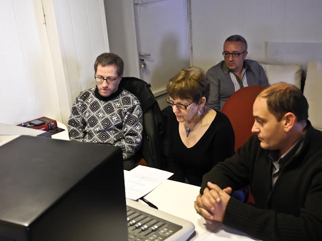 At 4:00 PM the cab dropped us off at Triton Media where Magic Agora does its post-production. While Pepe worked on editing a video that was shot at the beginning of the week, Salva, Juan, Susan and I worked in the recording studio. It took about two hours to record two one-minute spots and a 30 second promo. I had translated the script into English a while back and now the challenge was to match up the length of each English phrase with the length of the Spanish phrase. The task was made all the more daunting because Spanish is a more poetic language than English and flows more easily. The Spanish spot starts with “Soy maga” and the English starts with I am a magician”. Obviously the meaning is the same, but the emotional undercurrent is totally different. We reworked the script in a number of places and finally we were all happy with the result. We hopped a cab and were back home a little before 7:00.