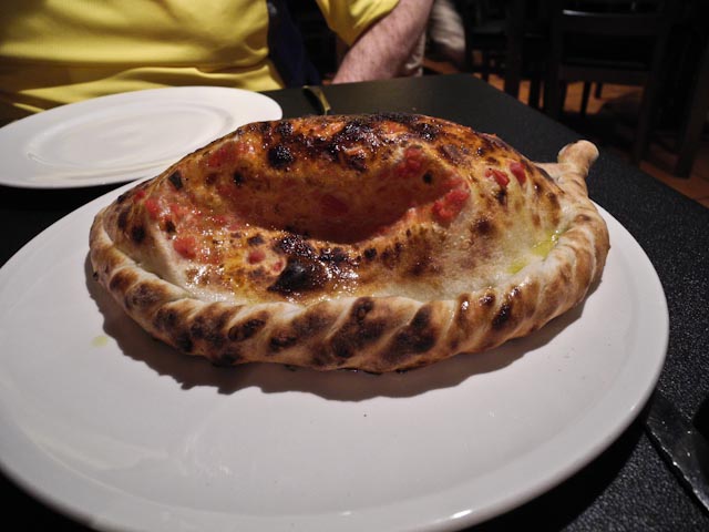 We decided to have dinner at La Fórcola and that was a good decision. We shared a salad that had a variety of field greens, cherry tomatoes, nuts, raisins, and Parmesan crisps. We then shared their calzone doc that is stuffed with jamón serrano, mascarpone and mozzarella. We passed on dessert and coffee. When we left the restaurant at 11:00 it was sprinkling. Surprise! We played around on the computer for a while and then read for another twenty minutes or so. It was well after 12:30 when we went to bed.