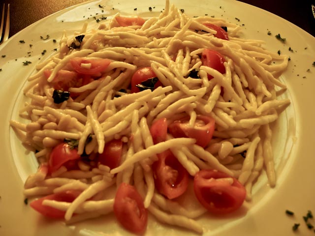 I also used my afternoon and early evening to work on my translation of the Dean Dill article. I am about halfway through it and I hope to finish it up this weekend. Around 9:00 we snuck out to La Fórcola and had an early dinner. We started off with a plate of steamed mussels and then I chose a linguine with seafood for my entrée and Susan chose a pasta with a cheese sauce for hers. We ordered a bottle of verdicchio to go with the meal and it turned out to be an excellent choice. We both had dessert, but we passed on coffee. When we got back home we chatted with Rachel for a while and afterwards we watched some TV before calling it a day. We have no grand plan for today so we shall wait and see what develops.