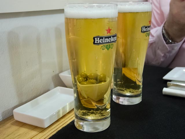 Since we had not heard from Pepe we went out in search of lunch. We were in the mood for something other than rice since that is on today’s menu. We ended up at La Comisaría and, once again, that turned out to be an excellent choice. We were greeted by Carlitos, our new Facebook friend and we took our seats near the window where we still had a view of what was going on in the kitchen. I ordered a beer and, to my great surprise, Susan ordered one too and we enjoyed the cold refreshing brew while we ate some olives and studied the menu. Our goal was to order dishes that we had not tried during our last visit.