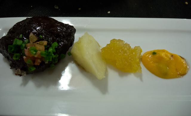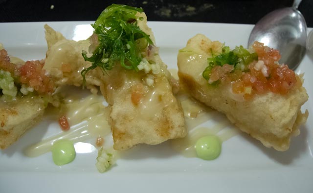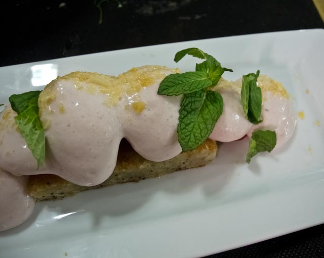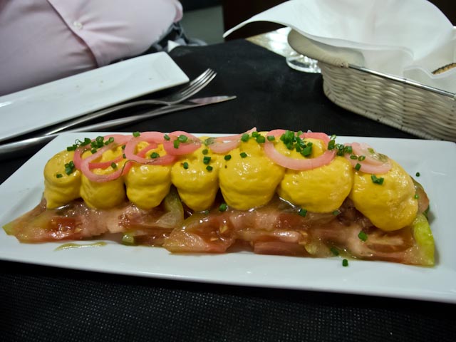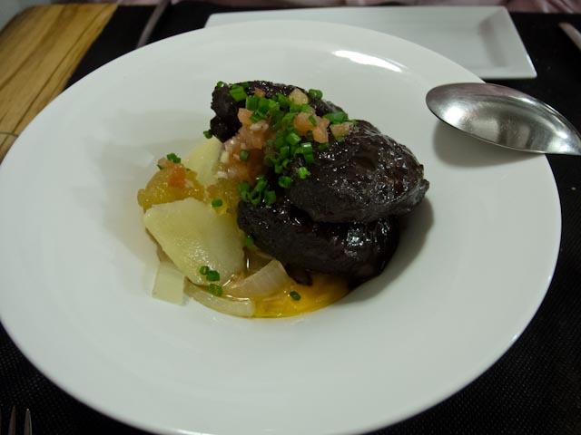 Watching Carlos cook one immediately becomes aware of his passion for both food and cooking. He is like an artist as you watch him compose the elements that will be put on the plate. Each element is carefully arranged on the plate and all herbs and sauces are artfully arranged. Each dish is a treat for the eyes and the palate. I think that the passion of the chef in these small restaurants that we continue to encounter is what makes the experience so memorable. It occurred to me that when you go to a named chef’s restaurant in Los Angeles or Las Vegas, unless the chef himself is cooking that night, what you are eating is his recipes prepared by someone who is not necessarily passionate about the food he is cooking. Mario Batali’s recipe prepared by someone other than Mario Batali does not necessarily produce the same result that Batali gets.