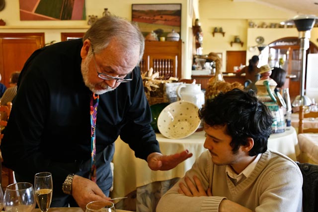 The two youngsters were having a quick bite prior to heading off to see an ice show. I had brought some kid stuff along with me and I did a couple of heart balloons with smiley faces for the two young ones. They seemed to be pleased with their unexpected gift. After taking another picture or two we returned to our table. A few minutes later María Dolores, one of the owners came to our table to warmly greet Ofelia and Brian and to say hello to Susan and me. We chatted for a bit and while we were chatting Juanra and Adela arrived.