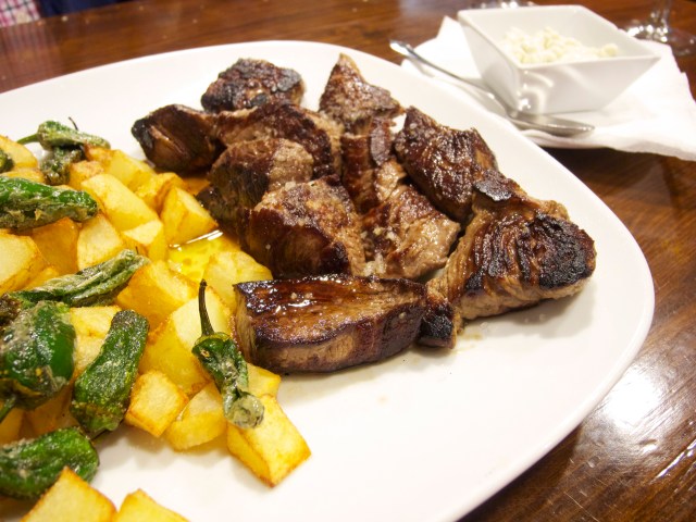 The protests were the excitement of the day. Otherwise, it was a rather predictable Tuesday. We paid a visit to the market and after putting things away we decided to go in search of lunch. Our intention was to have lunch at Refugio, but they are closed on Tuesdays – as we discovered. Since we were close to El Molinón we decided to have lunch there. We began with some cod fritters and followed those with a dish of steamed mussels. We also ordered a steak that was cooked rare and served with potatoes and pimientos de Padrón. We did not have room for dessert, so we finished the meal with coffee. From there we went to the Plaza de la Virgen in search of an ice cream, but the ice cream shop there was closed. By the way, we discovered that Linares has not gone out of business. They routinely close down for the winter. That is indeed good news.