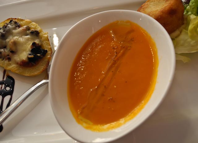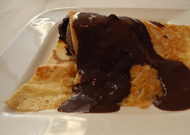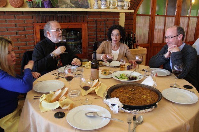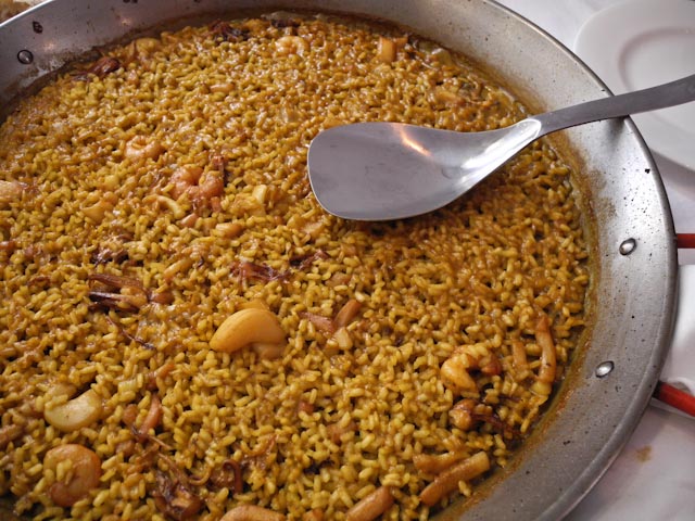 I managed to get a ride back home with Nacho Diago. Since we had both missed lunch we decided we would give A Nou a try and hoping, at the same time, that their lunch service was not over. There were only two diners in the restaurant and they were chatting over coffee. Javi told us to have a seat and that lunch would not be a problem. While we were looking at the menu, I decided to give Susan a call and invite her to join us for a drink or coffee. It turned out that she had not eaten either. So the three of us enjoyed an assortment of appetizers, a delicious and perfectly cooked arroz a la banda, and a crepe filled with chocolate ice cream and topped with chocolate sauce.