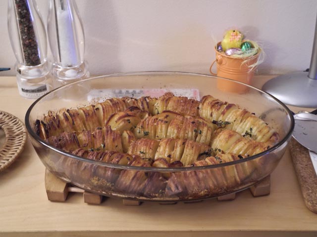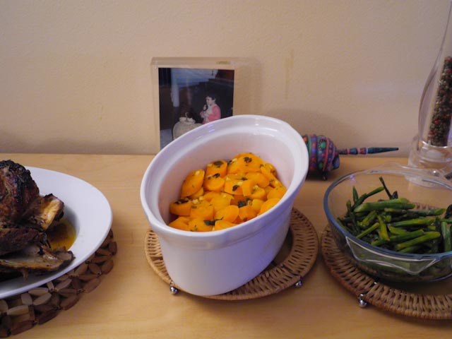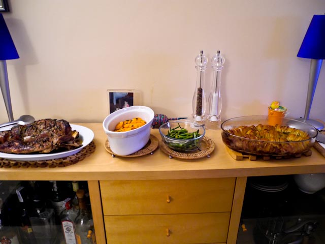 Sunday was a low expenditure of energy day. We had leftovers for lunch and read for most of the afternoon. At 7:00 PM Brian came by and drove us over to his and Ofelia’s house for Easter dinner. While the meal was cooking we sat in the living room and chatted about this and that. One of our topics of conversation was how seemingly unimportant choices in our lives can drastically affect the course of our lives and how we can only appreciate or understand this in retrospect. When dinner was ready we moved the conversation and ourselves to the dinner table.