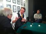 Yesterday Susan and I walked to Linares to have a late afternoon ice cream and that evening I made my way to the CIVAC meeting. Jörg Alexander was lecturing and it promised to be very entertaining and very enlightening. Jörg is part of a group called The Flicking Fingers and it is comprised of many of Germany’s best magicians and magic thinkers and inventors. In the course of the evening he showed and then explained five effects: a three phase ring and string effect, an effect with 10 Euro bills, his version of McDonald’s Aces, an effect using 20 cards and two wine glasses and lastly an effect with Tarot cards.