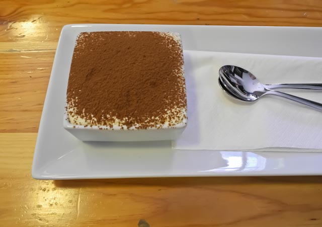 We had a bottle of a nice Italian red, La Poderina, from Montalcino. Dessert was tiramisú and it was one of the best that I have ever had because the cream portion was incredibly dense as opposed to most where the cream tends to be quite thin and almost runny. Since the cappuccino machine is still on its way from Italy instead of coffee Francisco offered us a little something to finish our meal. I had a ten-year-old Port and Susan opted for some Tanqueray Rangpur gin. What a great meal!