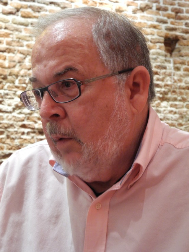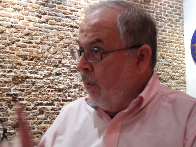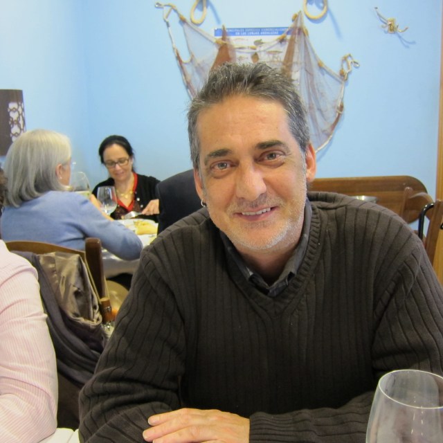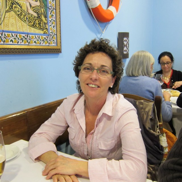 After chatting briefly with the assembled group Virginia, Jaime, Susan and I headed out for lunch. We stopped in at a restaurant that features the cuisine of Andalusia. It is a small space with a bar that accommodates perhaps eighteen patrons sitting and standing and in the back there is a dining area with six tables. We made ourselves comfortable and studied the menu. We ended up ordering a freidura, a plate of fried seafood that includes shrimp, sardines and squid, calamares en su tinta, albóndigas and carilladas de ibérico also know as pork cheeks. We had a beer or two to wash things down and finished the meal with coffee.