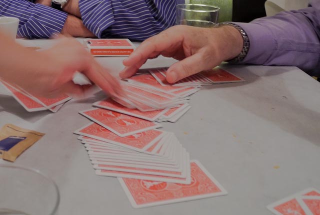 The theme for the night was color-changing knives and when the theme was exhausted the cards came out. I did a Peter Duffie and Robin Robertson effect and Pepe showed us a mind-blowing effect that Miguel Gómez had shared with him over the weekend when he was here shooting a series of videos for Magic Agora. Around 10:00 people were getting hungry and the question of where we should go to eat came up. I suggested Ballando Nudi and everyone seemed okay with my suggestion.