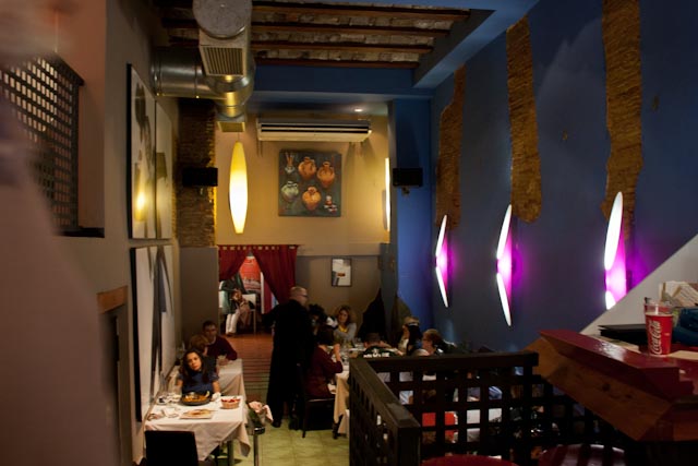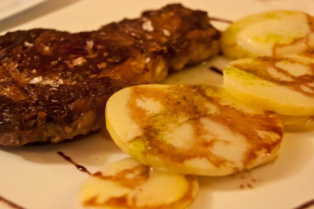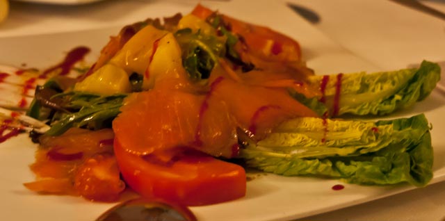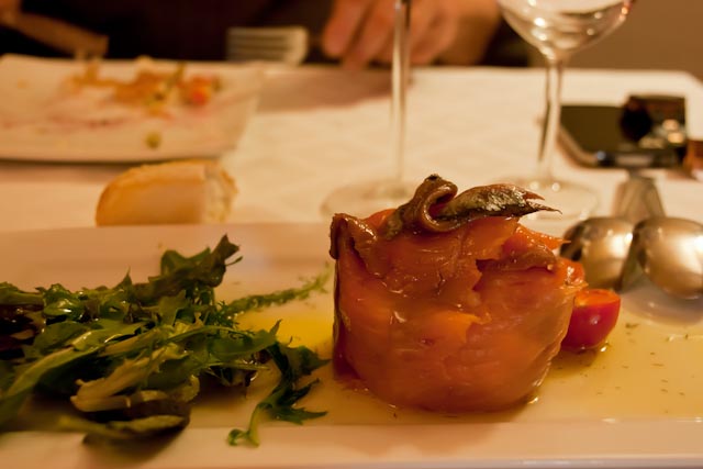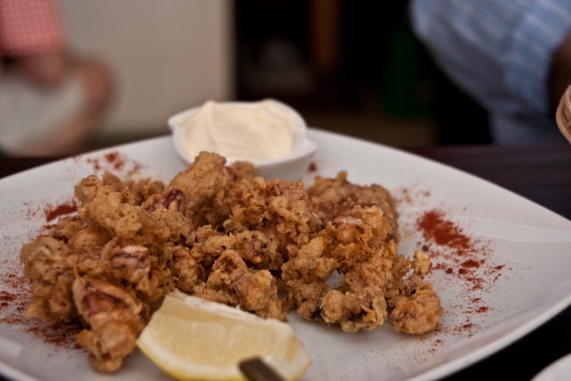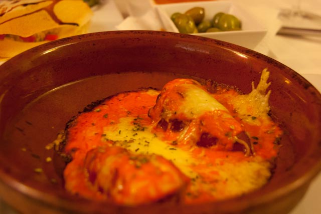 We thought we would eat at Canela, but when we walked in the place was jammed and our friend, José, asked if we had made a reservation. We hadn’t. He was sorry, but, at the moment, there were no tables available. He suggested that we go up the street to Canela Taberna, have a beer and stop by again in a half an hour. That’s what we did and it worked. Thirty minutes later we were seated at a prime table upstairs.