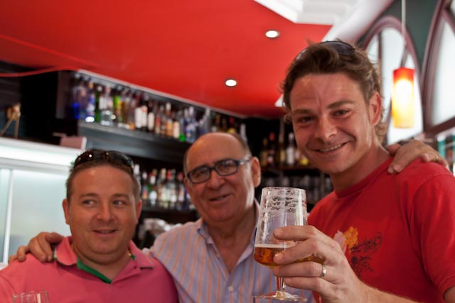 Yesterday was a day filled with surprises. We had agreed to meet Nacho and Cayetano at 12:30 at Las Torres to have a little something before we headed out to the Asador 7 de Julio for lunch. Susan and I arrived first and took a seat inside and ordered a glass of white wine while we waited for our friends to arrive. They showed up ten minutes later and we proceeded to chat, drink and listen to some very good music. We managed to consume two dishes of peanuts, a dish of olives and a plate of puntitas while we had another glass of wine and Nacho and Cayetano had another beer or three.