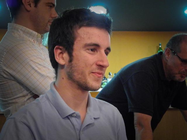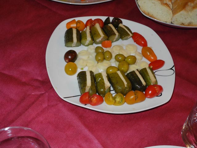 There were a variety of appetizers plated and placed on the table. There was a variety of vegetables, some guacamole and a bit of fish. Then came a never-ending supply of chicken curry and basmati rice. For those that were still hungry there was a plate of turkey burgers and when those disappeared it was time for dessert. Each dinner guest received a plate with two profiteroles and a slice of chocolate volcano cake. The meal was accompanied by red and white jug wine. In truth, this was a fun meal and very appropriate for the occasion.