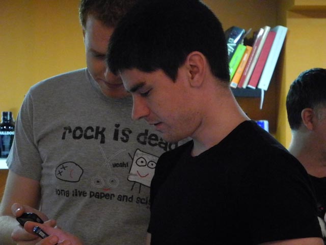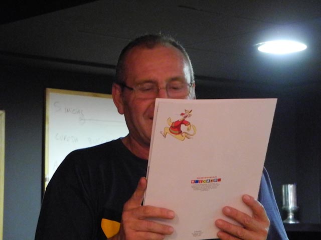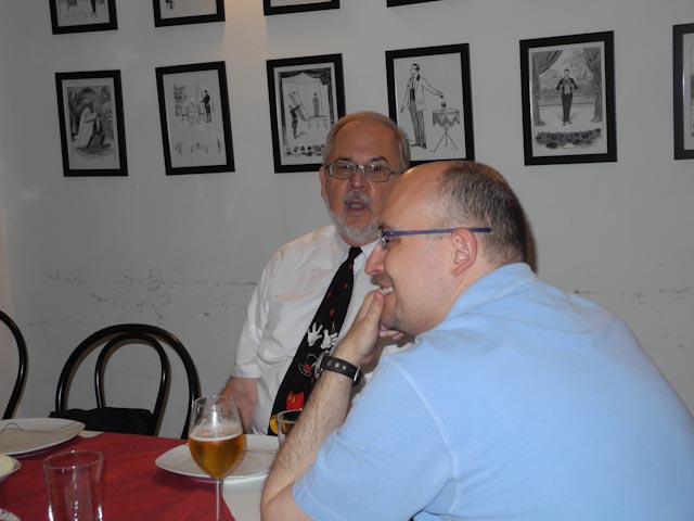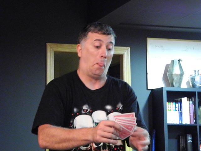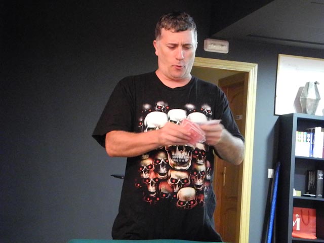 After the meal decks of cards made their appearance and several people came to the fore and did a trick or two. Even though I had prepared two effects, the conditions were not conducive to their being performed so they will have to wait for another day. No problem. A little after 11:00 we presented Magolo with a rather large birthday card and we thanked him for inviting us to share his retirement dinner. Conversations continued here and there and it was a little after 12:30 when Susan and I made our way home. It was yet another fun evening with Valencia’s magicians.