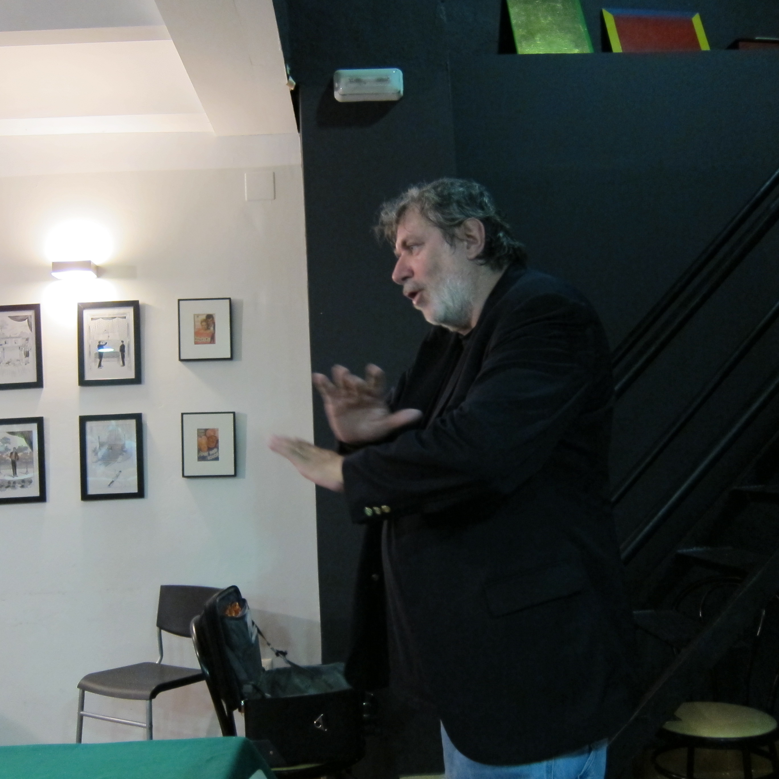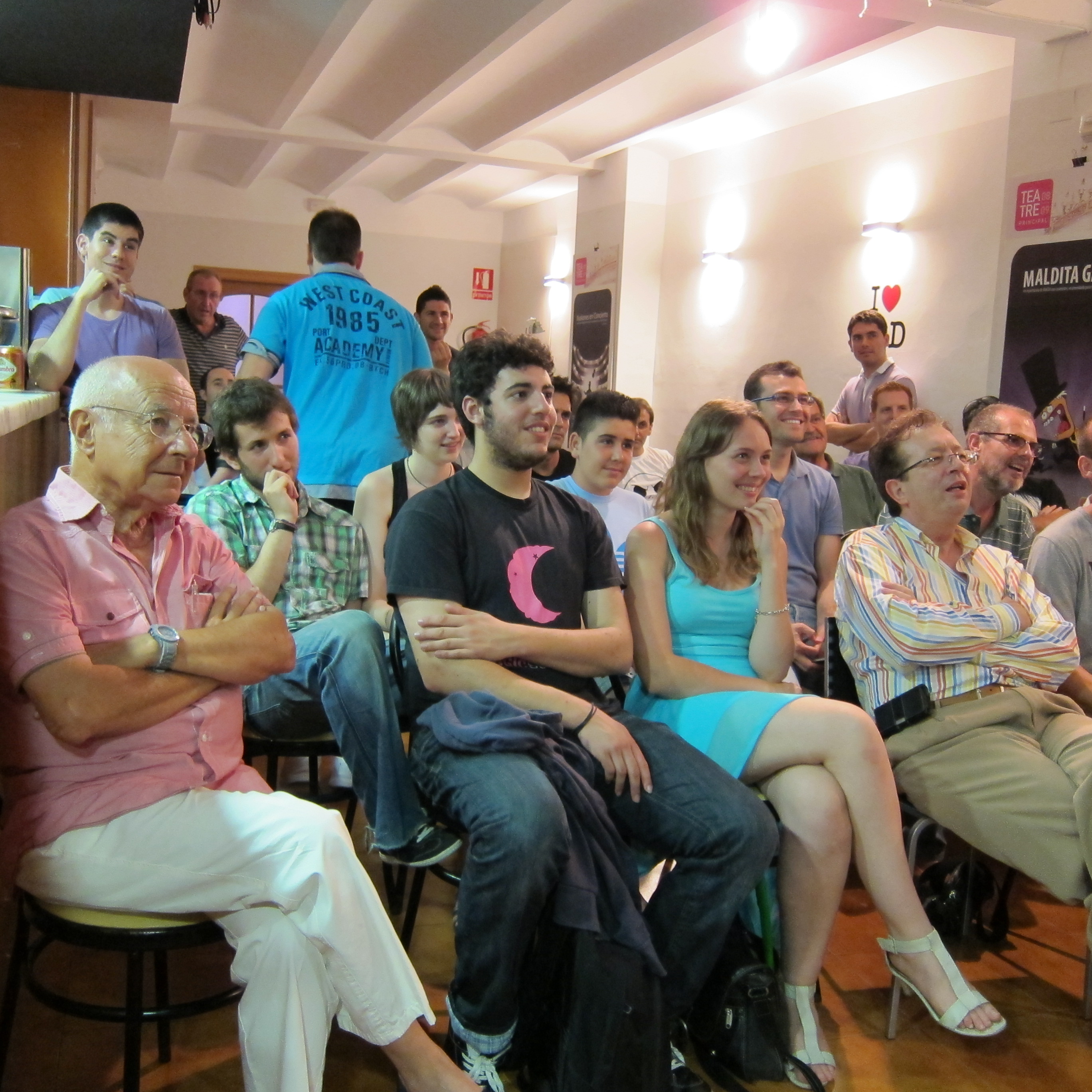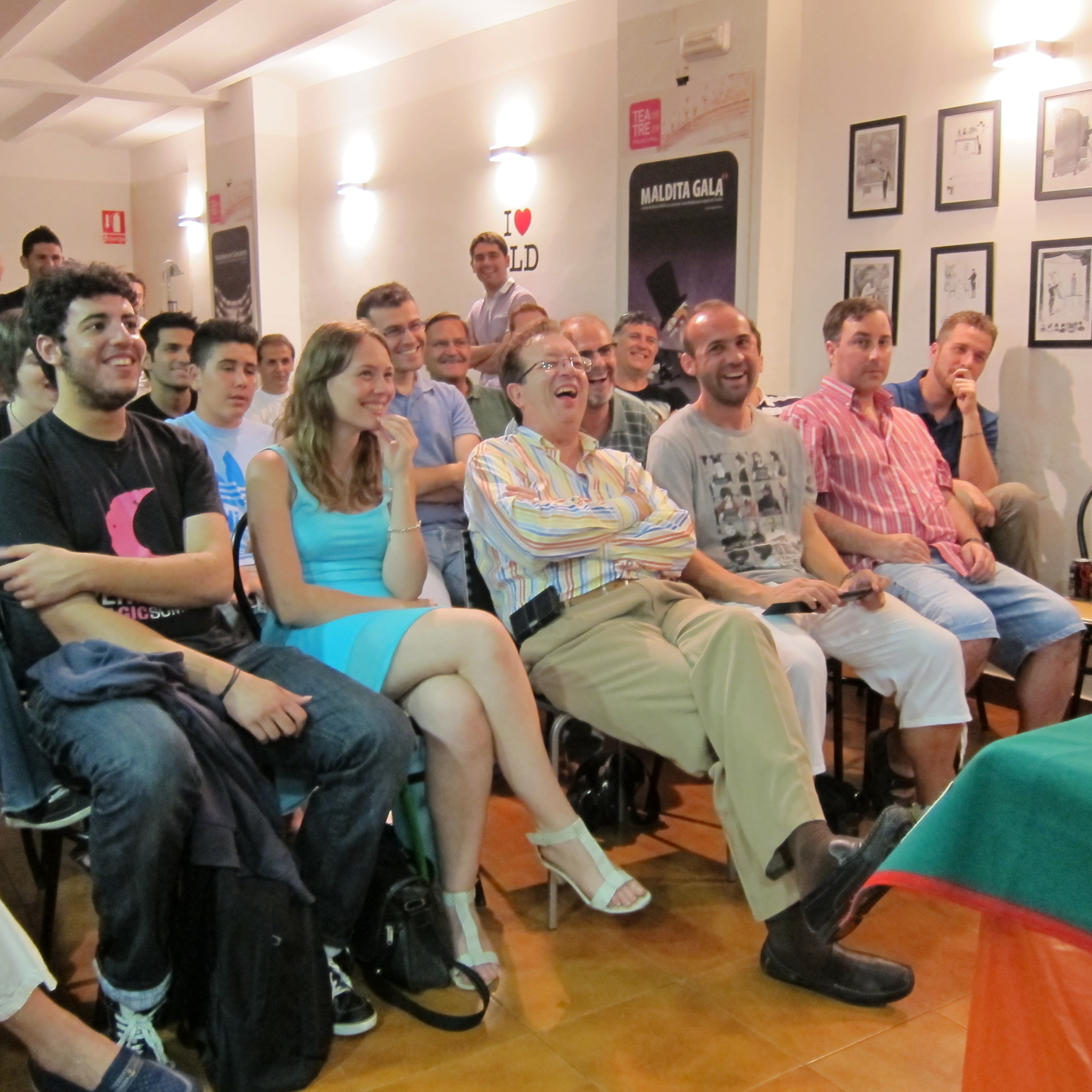 At the end of their lecture they offered their lecture notes for sale, as well as a number of DVD’s. Sales were brisk. When the lecture was over we all sat down at the tables and continued our conversation over sandwiches and beer. I sat next to Aldo and Rachel and we chatted for another hour or so. They are currently on a twenty-seven stop tour of Spain and are about halfway through. Their American tour took them to eighty-two different stops. They will return home until September when they will visit Germany where they have fifteen lectures scheduled and that will be the final stop on their farewell tour.
