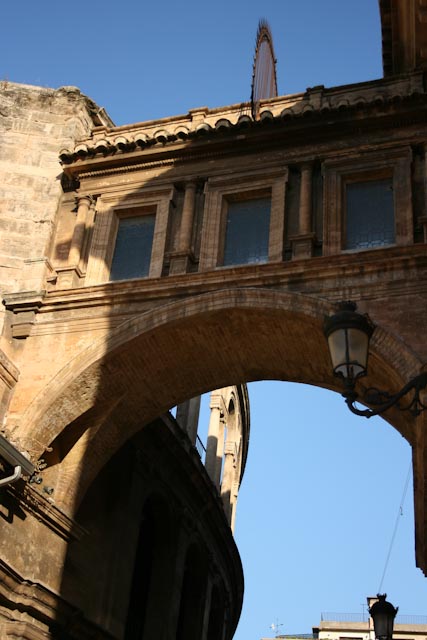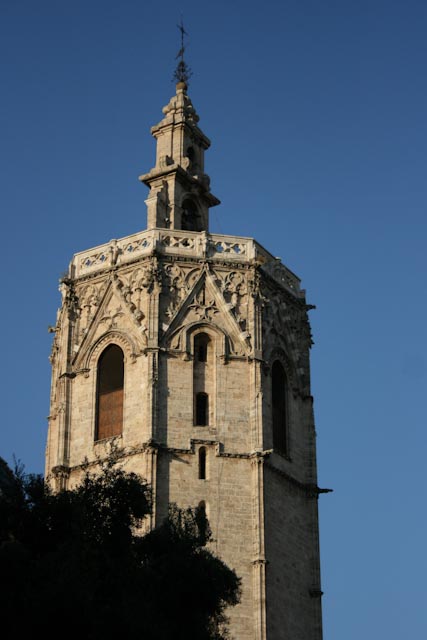 A little before 7:00 we decided that thing had cooled down enough for us to take a walk. We made our way through the Turia heading towards the Torres de Serrano. It was Sunday and the park was filled with people participating in all sorts of activities and some were just stretched out enjoying the sunny day. We even stopped and watched a soccer game in progress on one of the many athletic fields that populate the park.