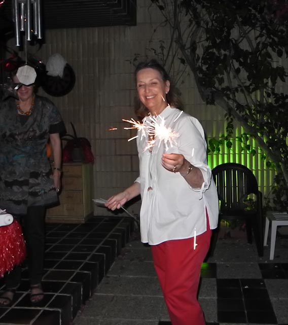 There was more than enough food and it ranged from stuffed mushrooms, to tabouleh, to chicken wings to broccoli salad and to empanadas. There was also an ample supply of beer and wine. There were cupcakes for dessert as well as a delightful treat that was called a seven-layer cookie. We lit sparklers and there were a number of ground fireworks set off. The fire danger is high here in Valencia and surroundings and for that reason aerial fireworks were a no-no.