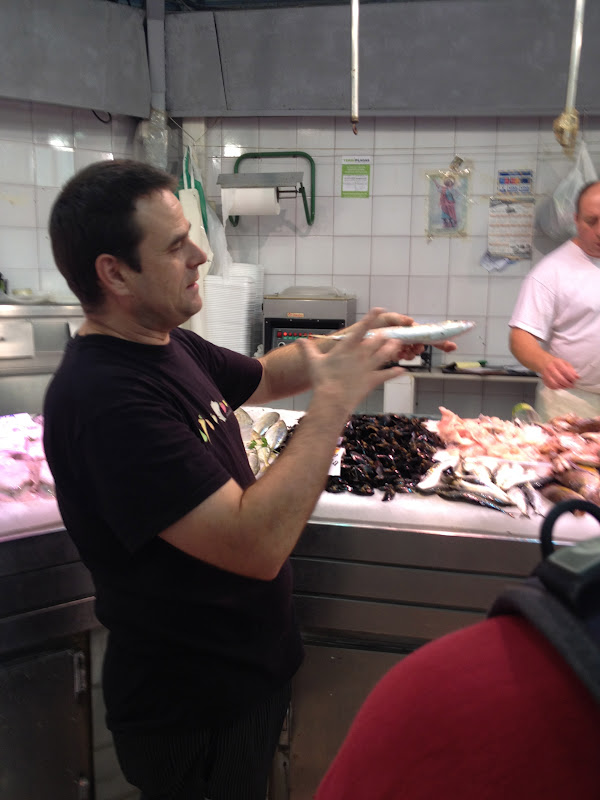 Our evening was uneventful. I finished another book La playa de los ahogados, which is set in Galicia. It is a murder mystery featuring a detective named Leo Caldas. It has been translated into English and is available on Amazon. I did not finish the book until 1:30 and by then Susan had long since fallen asleep. Today’s pictures of Jordi were taken on the day the Woodberry boys accompanied Jordi to the Central Market. The photos were taken by Andrew Handelsman.