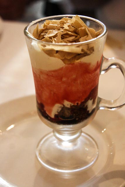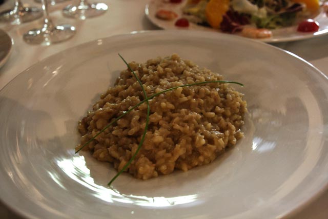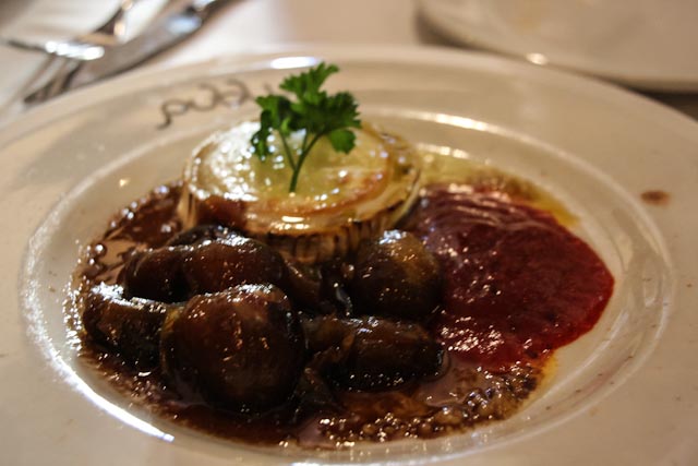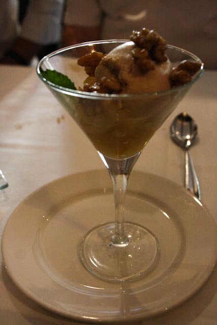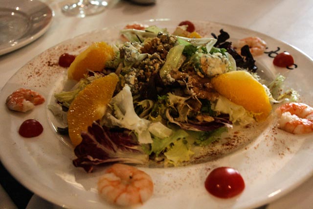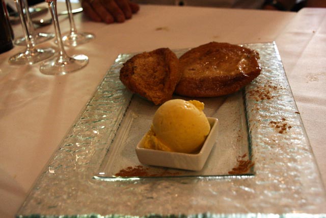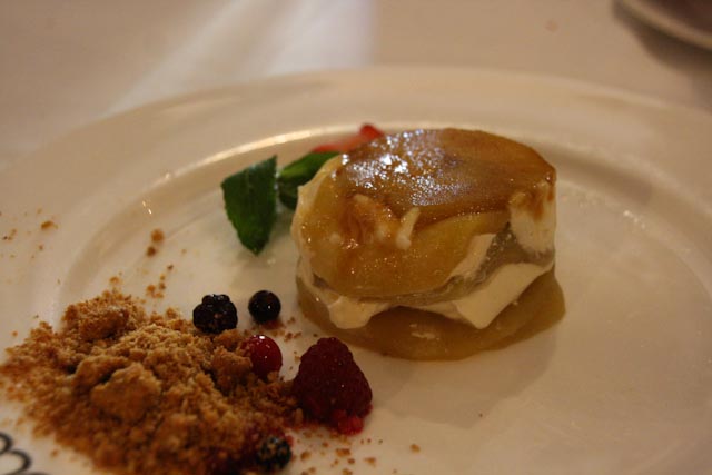 We had a very leisurely and lovely meal and we shared everything except for dessert. We enjoyed a risotto with foie, a salad with orange slices and prawns, langoustines with salt and pepper, goat cheese in a red pepper marmalade with caramelized onions and some anchovy canapés. Our four desserts were their version of apple pie, torrija – think French Toast – with vanilla ice cream, apple compote with a scoop of cinnamon ice cream and a lovely concoction that they call the dessert that you eat from bottom to top. WE finished the meal with coffee and by the time we made it back to the hotel it was 5:00 o’clock. We stayed in for the rest of the evening, although Susan did slip out for a cup of coffee. I flaked out around 10:30 and Susan finally came to bed around 12:30.