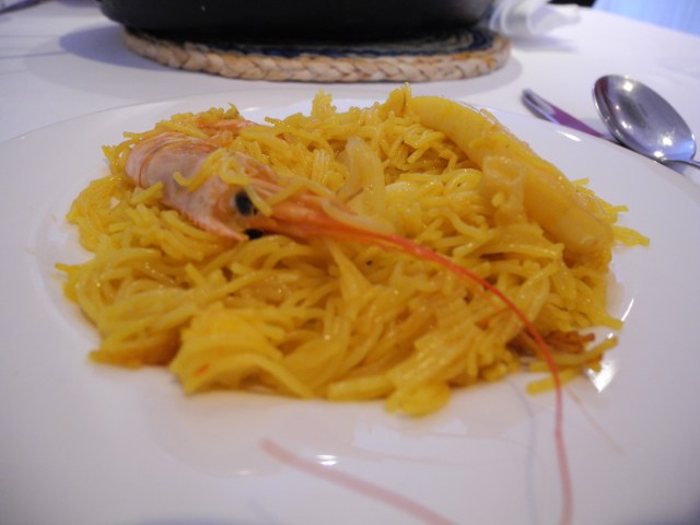 Yesterday’s menu was particularly enticing. The appetizers included a scramble with fresh asparagus and ham, goat cheese with caramelized onion and a croqueta de bacalao. We chose a seafood fideuá as our entrée and it was spectacular. Talking with Javi we discovered that Sunday is a special day at A Nou. They are hosting a food and wine luncheon that starts at 2:00 followed by a concert that will focus on traditional Valencian songs. The cost is 25 Euros per person and it sounded so attractive that we made our reservations there on the spot.