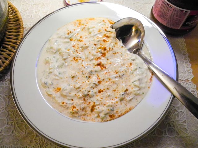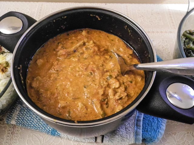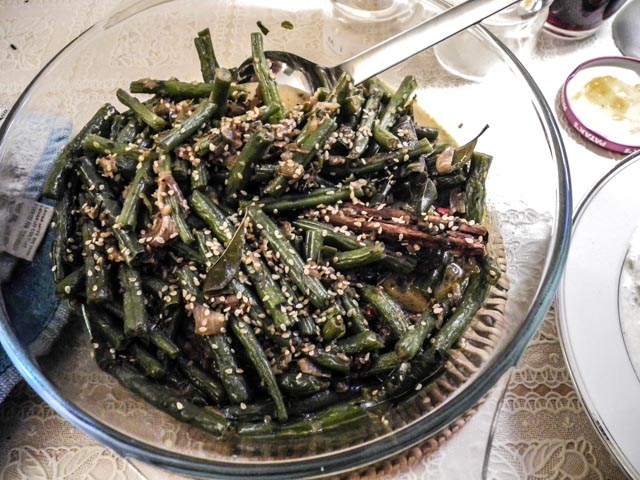 We headed out a little after 7:00 and it took us about twenty minutes to walk to Brian and Ofelia’s. Ofelia had been out of town for a bit visiting with friends and family in Belgium. As always, it was good to catch up with her again. We caught up with each other over a drink and Brian excused himself now and again to check on the progress of dinner. The recent election was a topic of our conversations, also. When Brian called us to the table, we all took our seats and watched the buffet fill up with all the goodies that Brian had prepared for us.