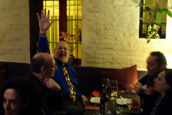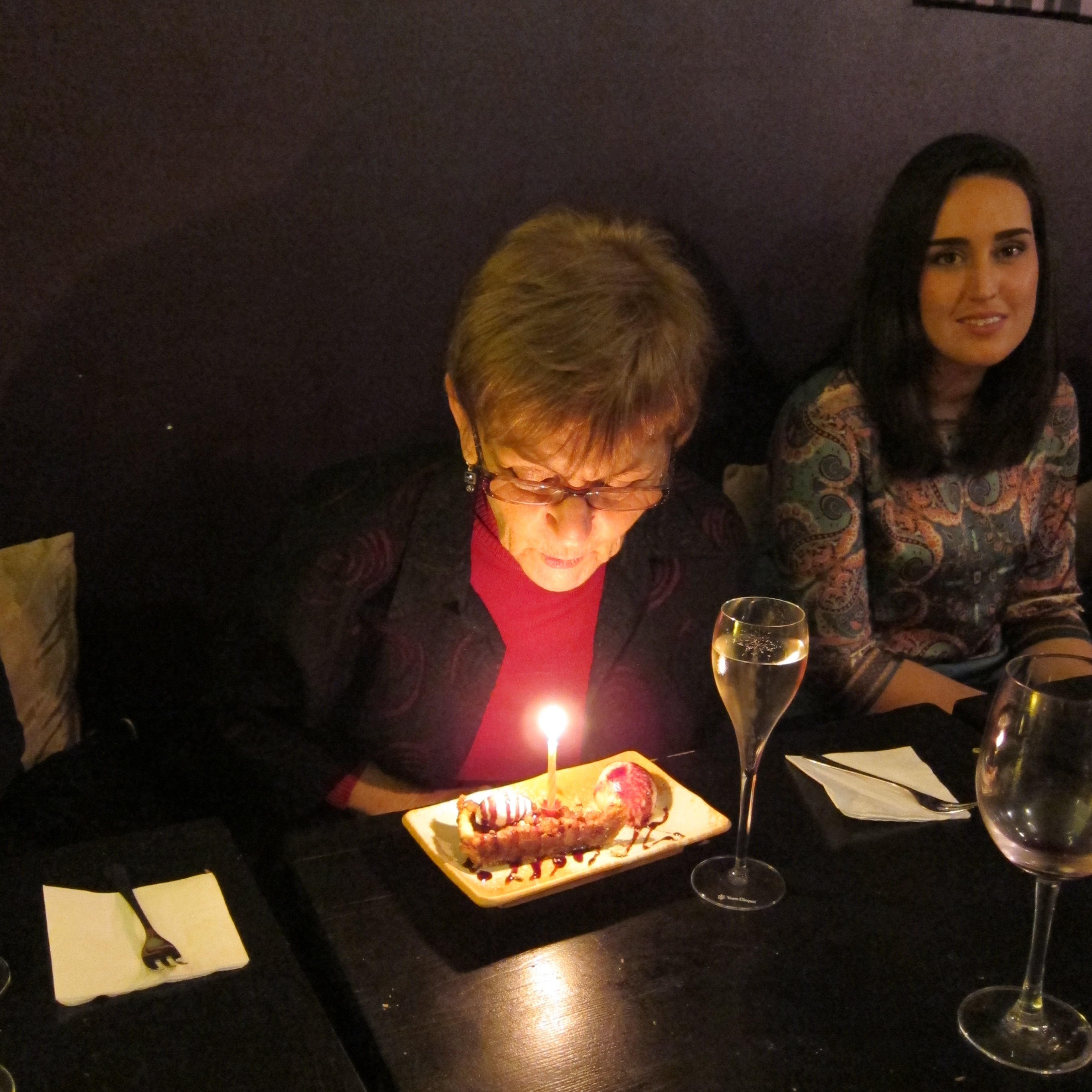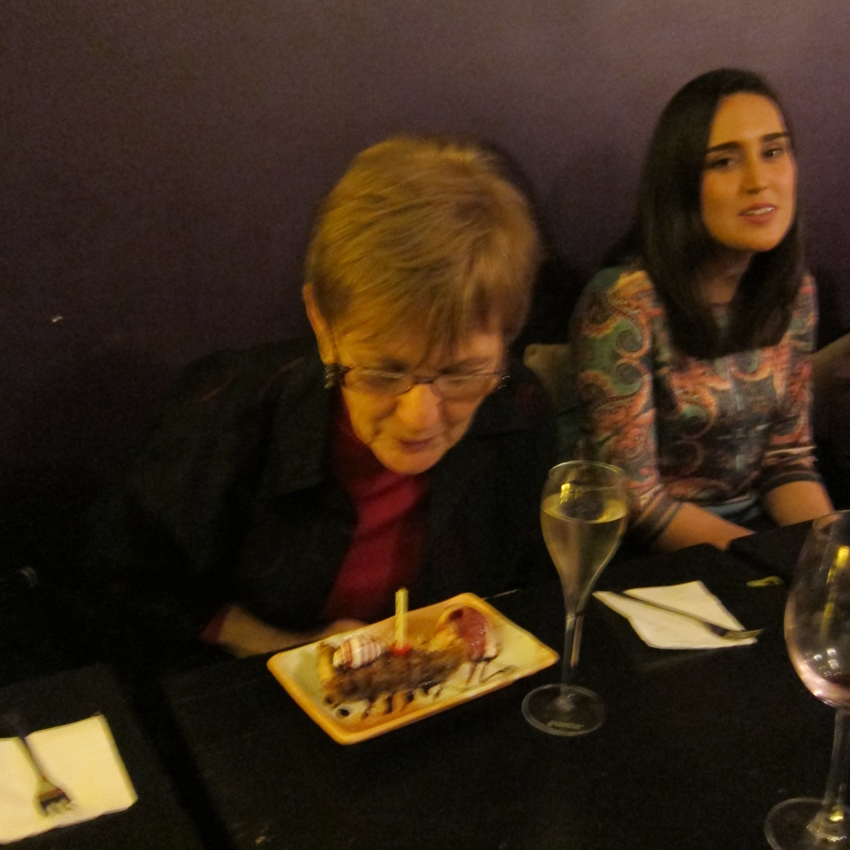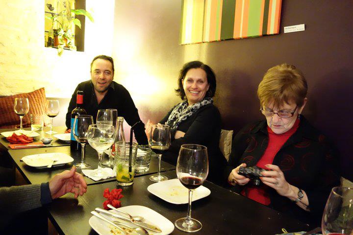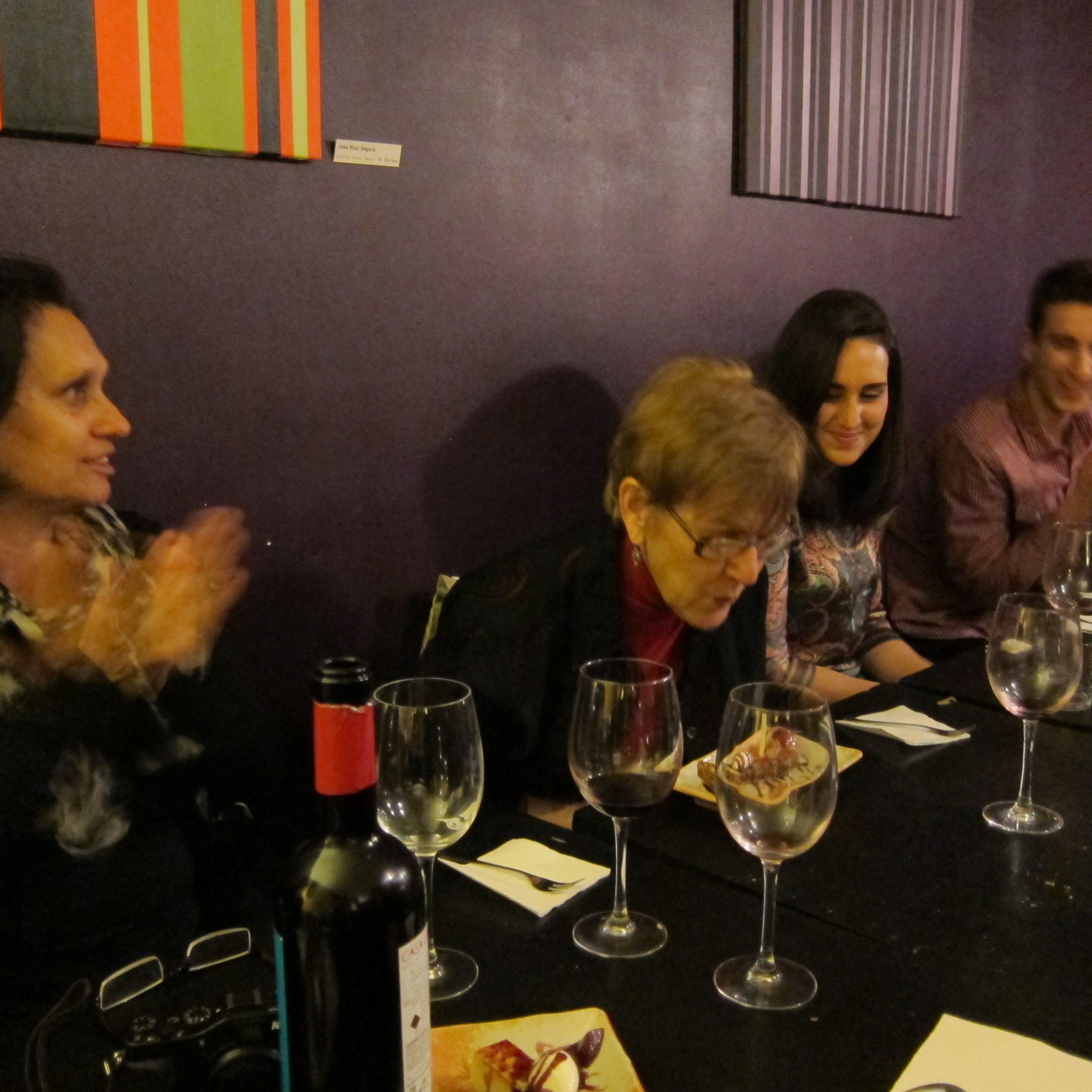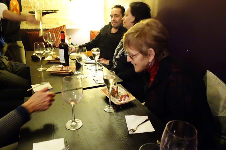 Last night we celebrated Susan’s birthday at The Ginger Loft. Ten of us gathered at 9:00 PM and we made our way upstairs where our table was waiting. Many of the usual cast of characters were present – Zahava, Klaus, Brian, Ofelia, Pepe, Paquito – as well as Olivia and Jaime. I had previously settled on a menu with Mike and as we chatted a procession of tasty dishes appeared at the table. If I remember we feasted on the following: hummus, caponata, ceviche, chicken satay, won tons, Vietnamese pork, green Thai curry and a variety of desserts. We toasted with Cava at the end of the meal. It was close to 1:00 when we finally left the restaurant. Susan packed u her gifts in her new Rollser shopping cart, which was also one of her gifts. The streets were mostly empty as we made the five-minute walk back home and it was a little after 2:00 when we finally went to bed.