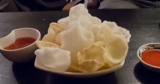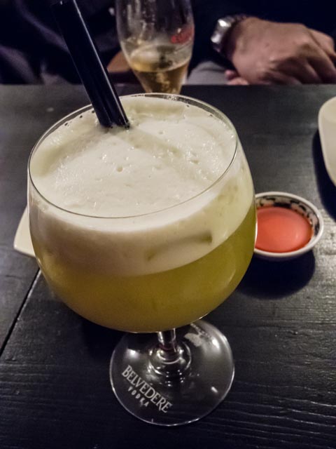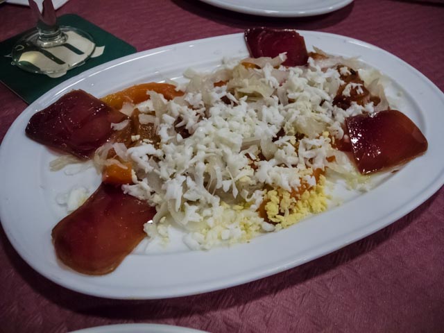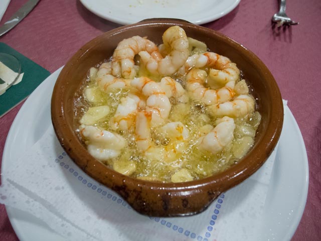 We ordered three tapas – escailibada, puntillas and gambas al ajillo. All the dishes were very tasty. We managed to down several beers and a couple of glasses of red while we snacked. Dessert was a coffee and a chupito. It was close to 11:00 when he headed back home.