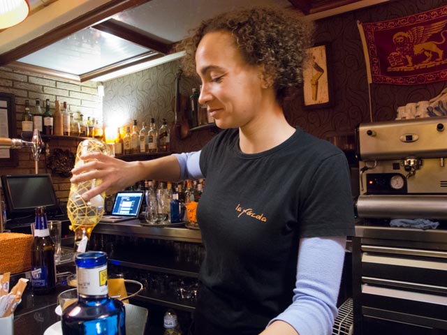After the concert we paid a visit to Bar Ricardo, which is about four or five block away from our old place on Borrull. Susan and Zahava had eaten there a week ago and Susan was anxious for me to try it out. Our timing was perfect and we got the last table. After that groups, both large and small, kept coming through the door and they filled up the bar area, the downstairs dining room, the upstairs dining room and all the tables on the terrace. Who knew it was such a popular space?