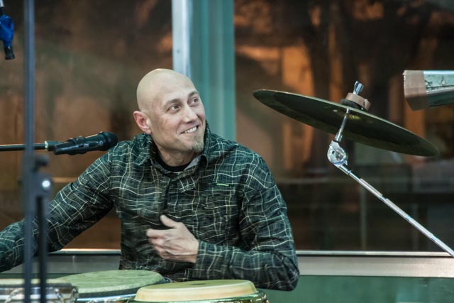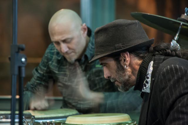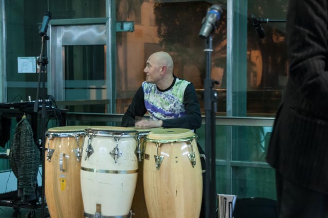 Last night we went over to the MuVIM for a musical performance that featured the music if Cuba. Jordi had opened the café in anticipation of some lively business. The start time was intended to be 8:00 o’clock but by the time the musicians had stopped greeting friends and family and had the audio setup functioning it was close to 9:30 and a goodly number of people had left. The speakers were no match for the space, which is cavernous and prone to reverb. I left early, but Susan stayed on to take some photos.