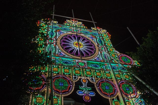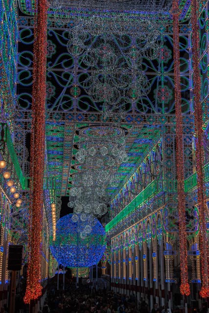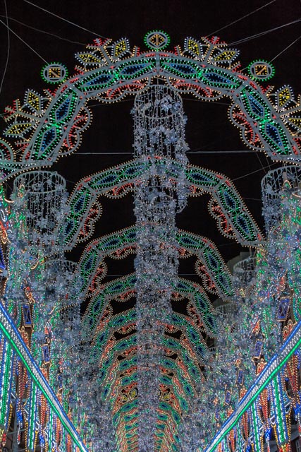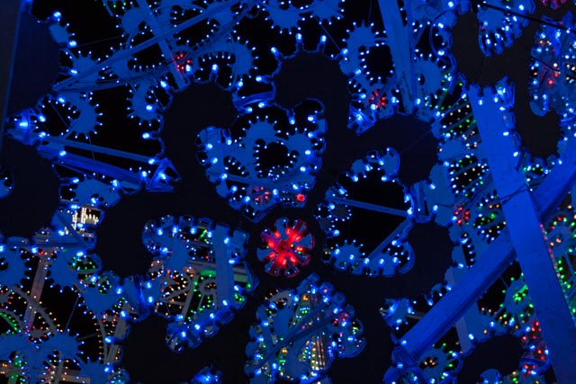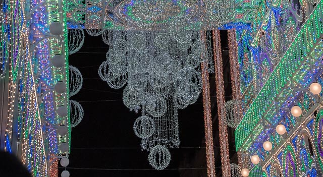 A little after 9:00 we headed out and for the next two hours we watched as the various light displays did their thing, always accompanied by music. Our first stop was a replica of the London Bridge in lights and it is a display that goes on for blocks and blocks. Our next stop was the recreation of a ballroom within a palace. It was the first lighting of this display and to the tune of The Blue Danube Waltz various element of the display were lit and, as the song ended, the entire display was illuminated.
