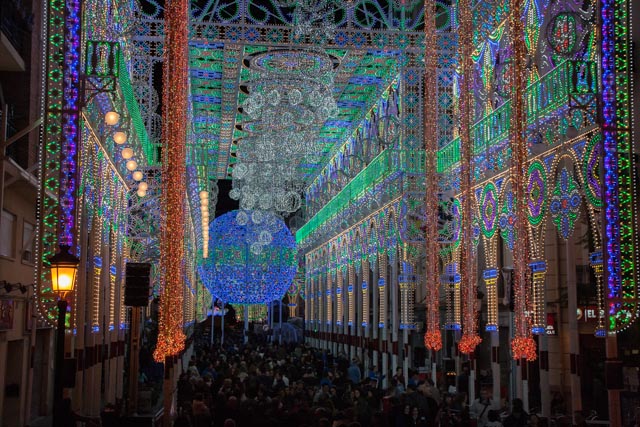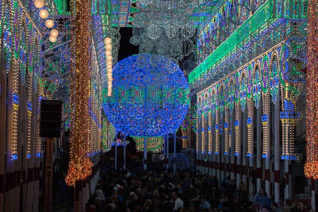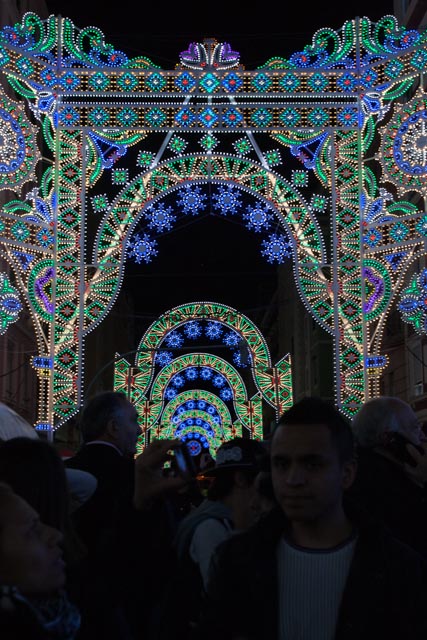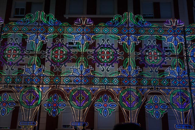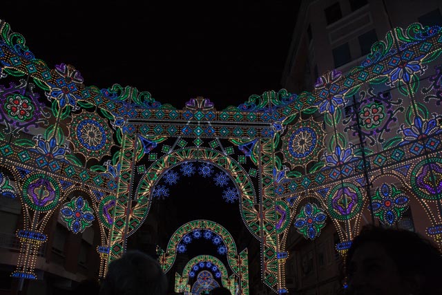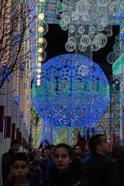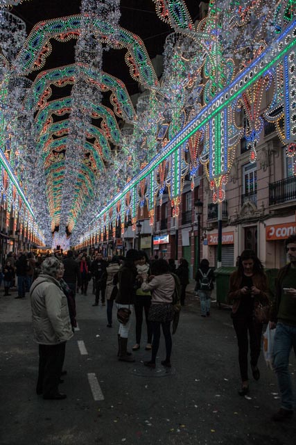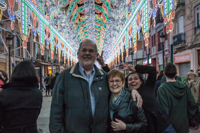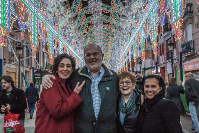 Last evening Brian and Ofelia invited us to join them for some tapas followed by a visit to the light show that is at its brightest and most artful in the streets that surround their apartment. Zahava arrived only moments before we did and, unfortunately, Klaus was at home nursing a cold. We chatted while we munched on a most delightful array of goodies. Brian had set out an international buffet with samplings of dishes from India, the Middle East and points east and west.