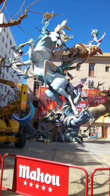 The tent in front of our building has just been erected and the members of the casal faller that is around the corner will occupy it either tomorrow evening or Friday noon. The noise level outside our apartment will increase markedly starting Friday night. Thankfully our bedroom is in the rear of the apartment, but given the loud music that blares from these tents, I don’t know that our location will make a significant difference. We shall see.